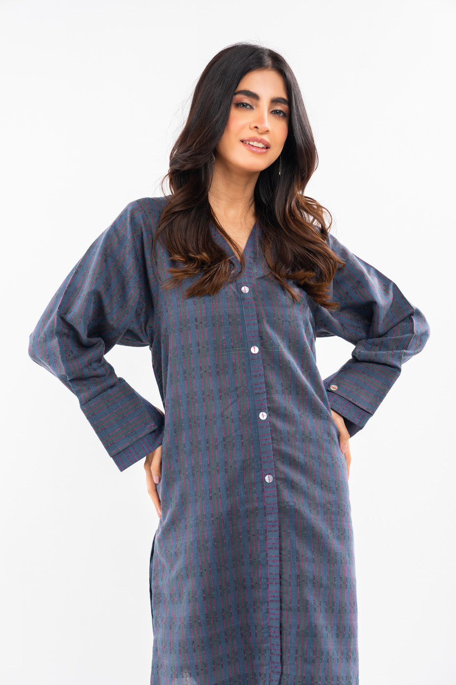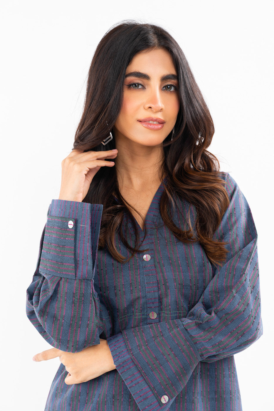 Casual Luxe Blue Button-Down Shirt with Thin Stripes