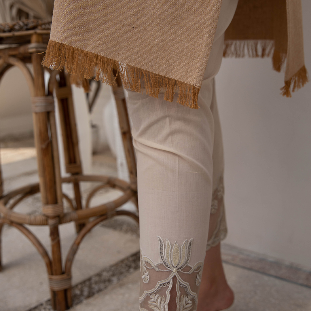 Elevate the everyday with Daisy, a handcrafted loose fit kurta in earthy tones finished with pearl details making it perfect for your winter wardrobe. It is paired with tapered pants with lace details.