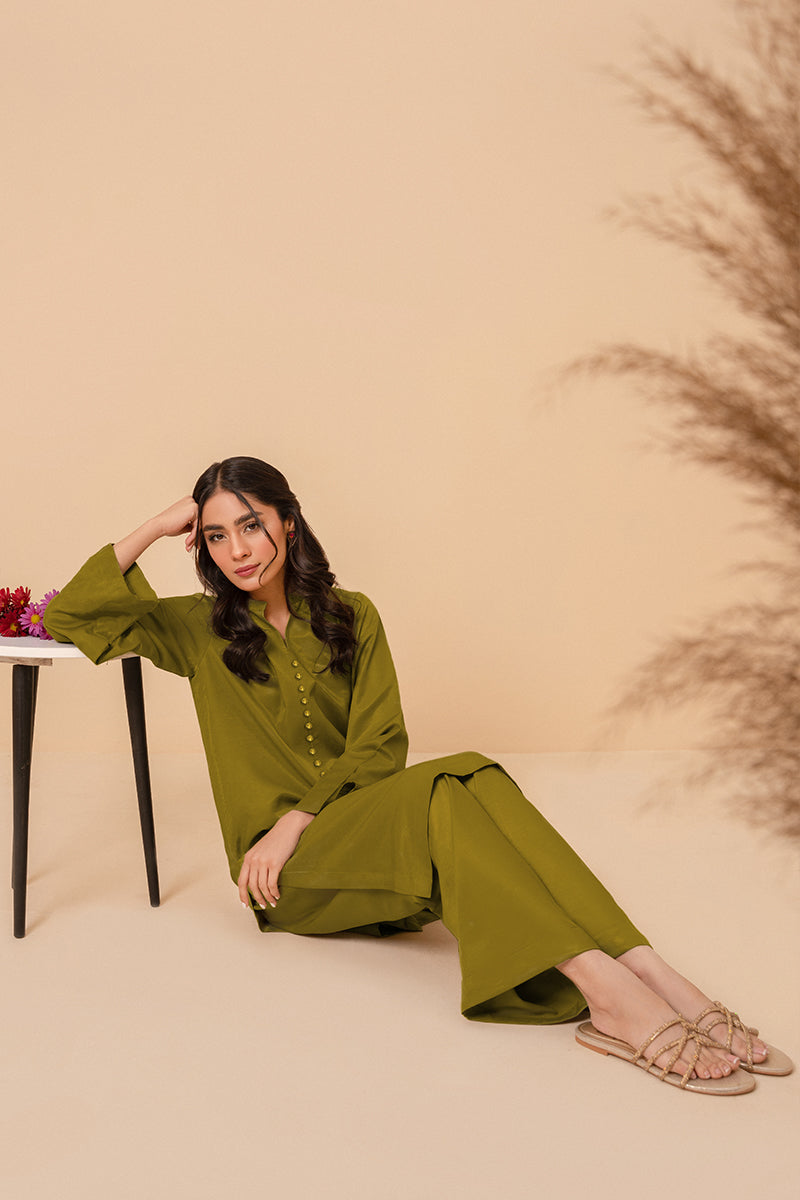 Envelope yourself in olive green hues with this basic co-rd set, perfect for the upcoming season.