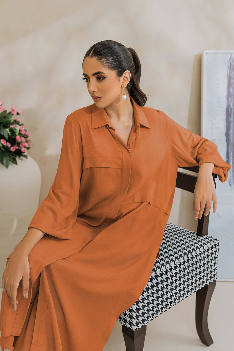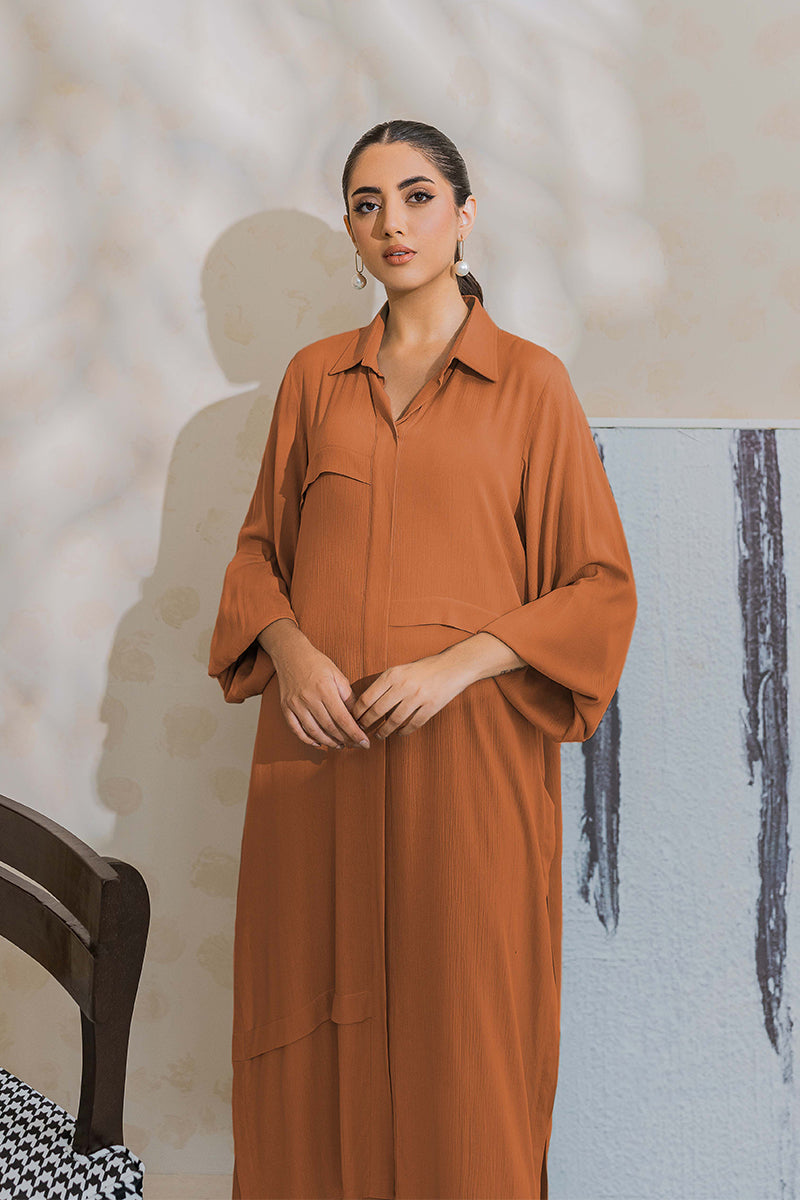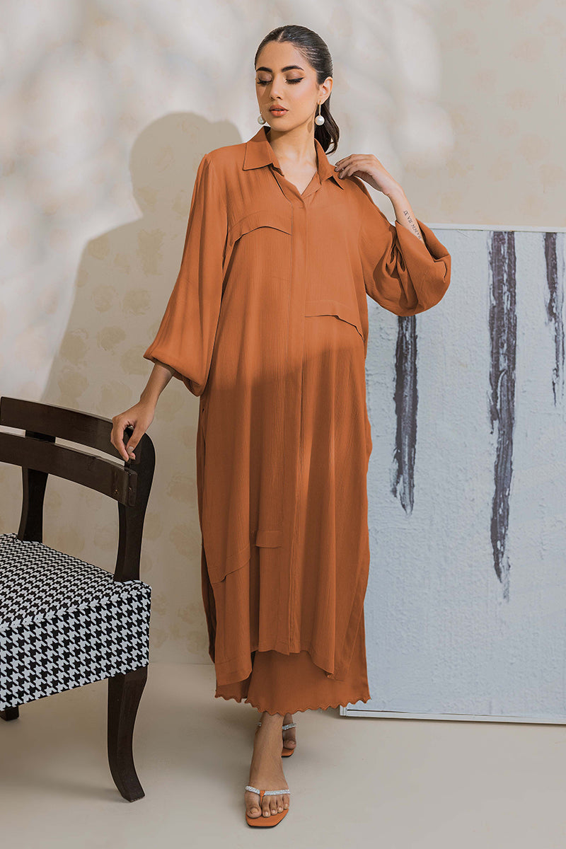 A perfect mustard silhouette on a self textured canvas is enhanced with pleats to make your wardrobe shine this season.