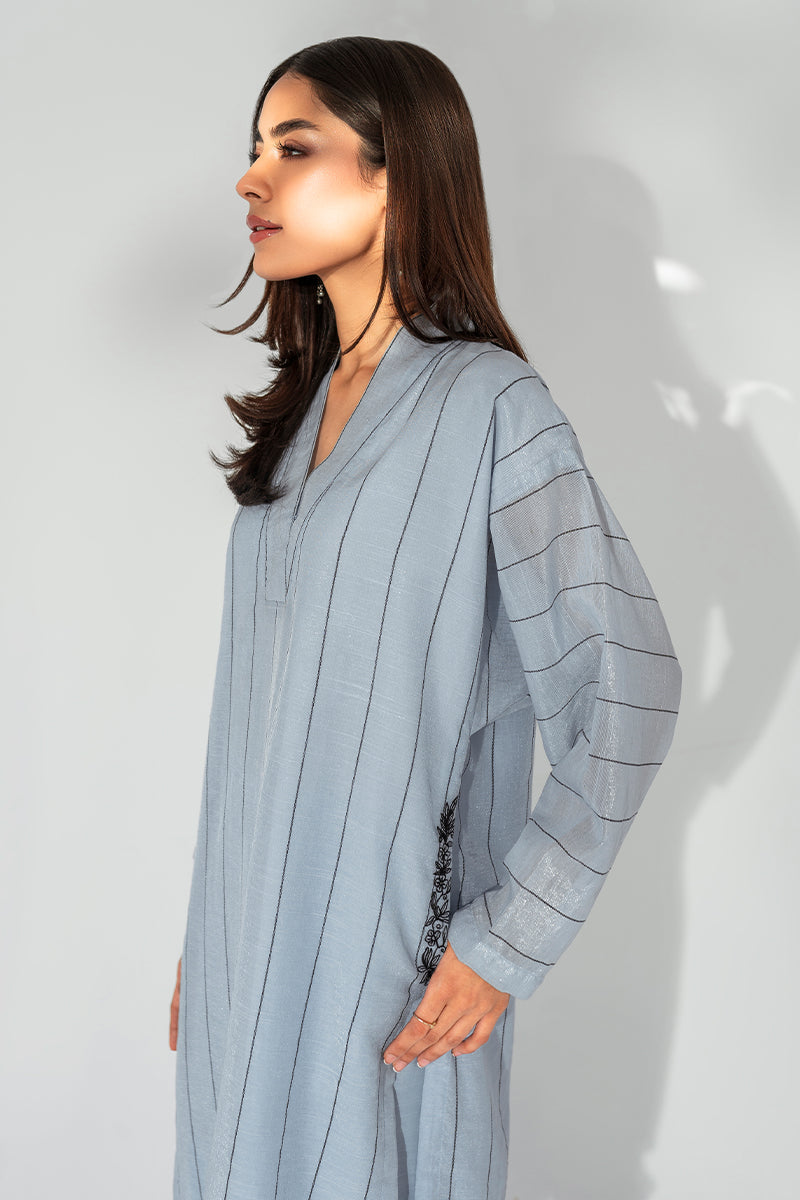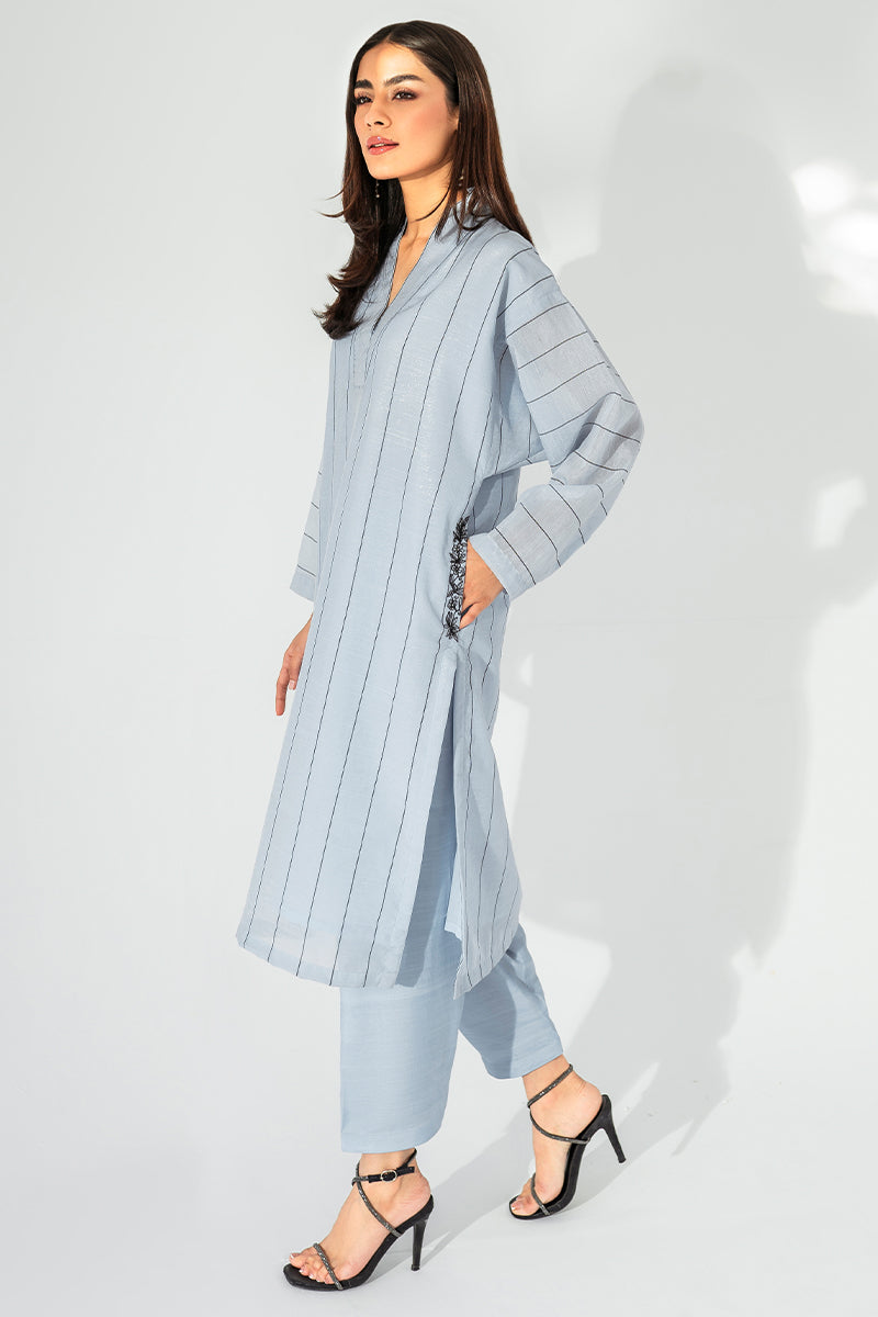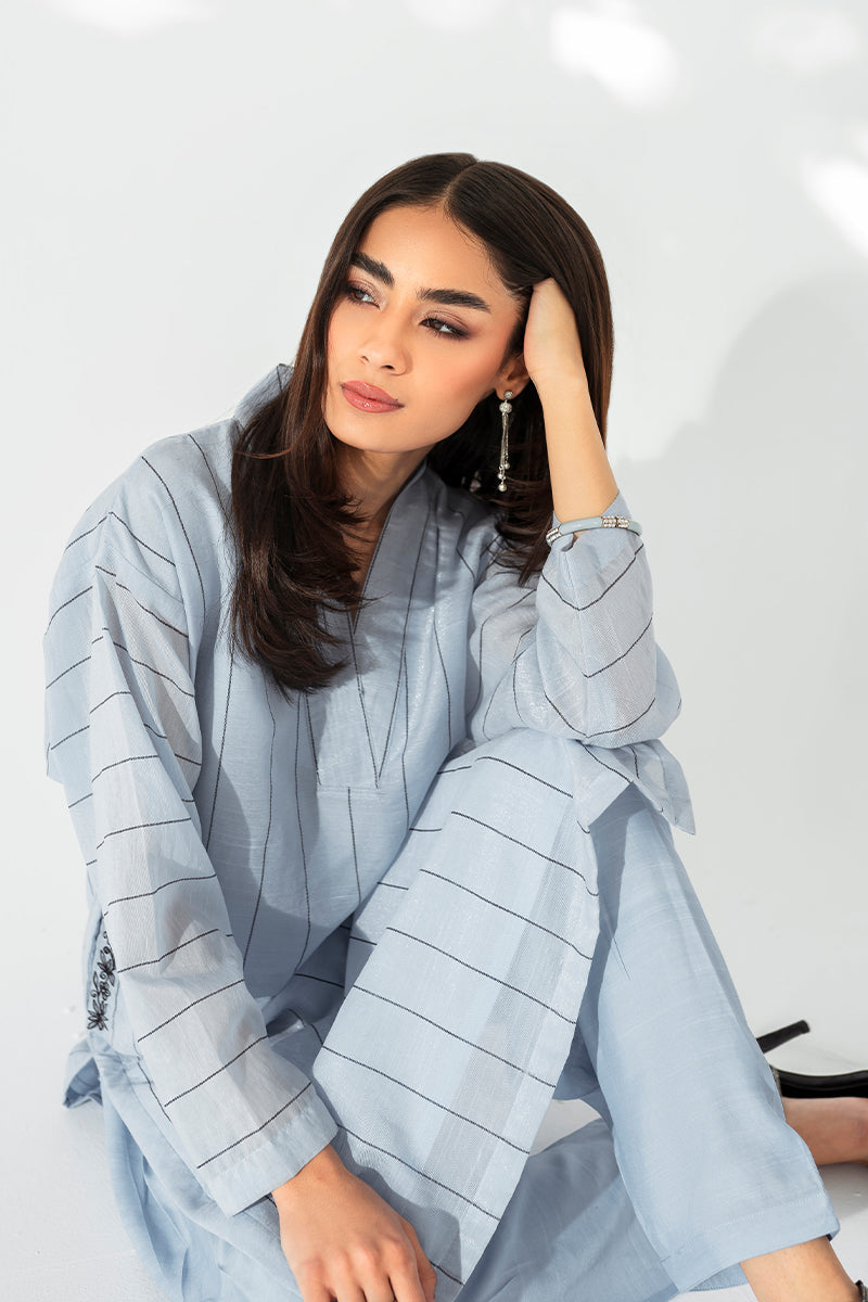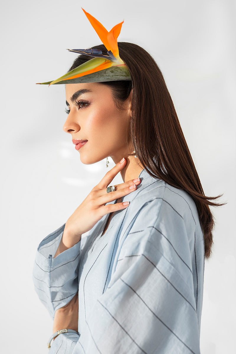 “Sapphire” is a minimal lining print in sky hues to create an undeniably captivating