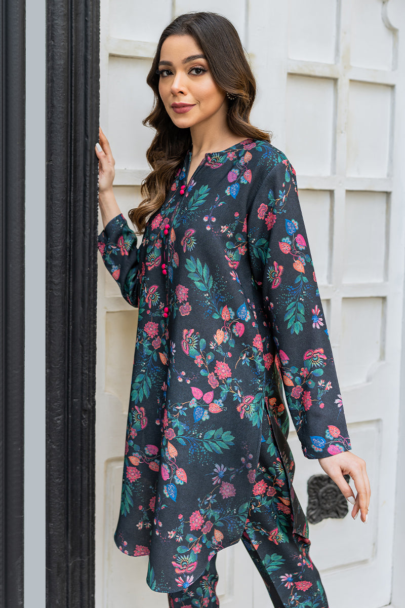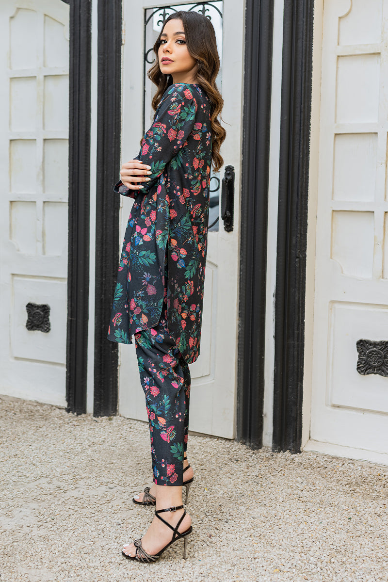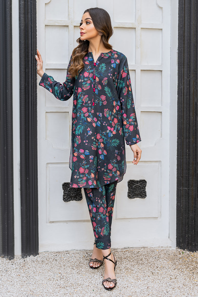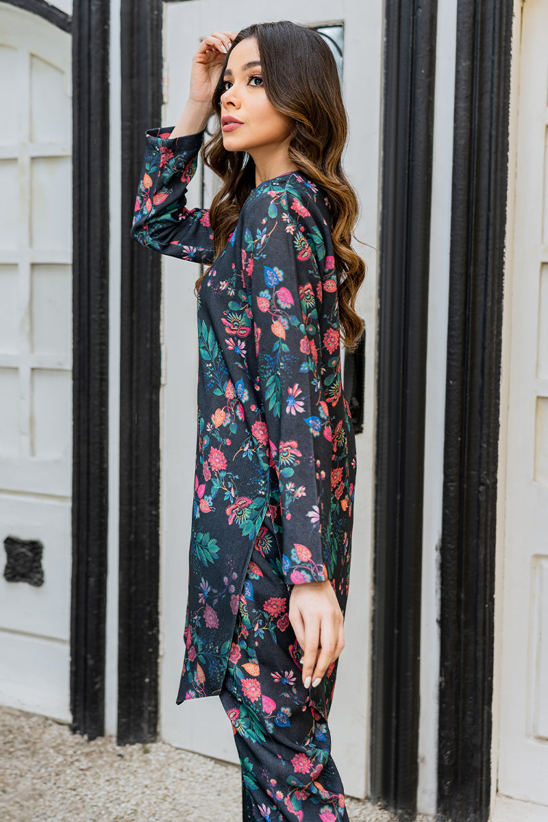 Adorn elegance in this blue printed solid simbued in hues of pink and blue, creating a chic style statement for this season.