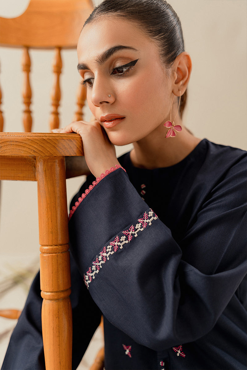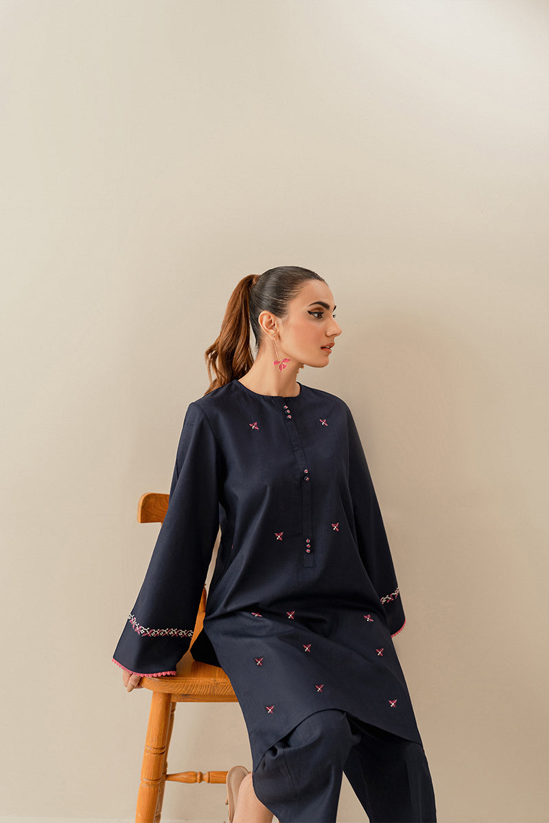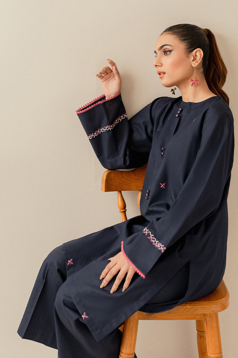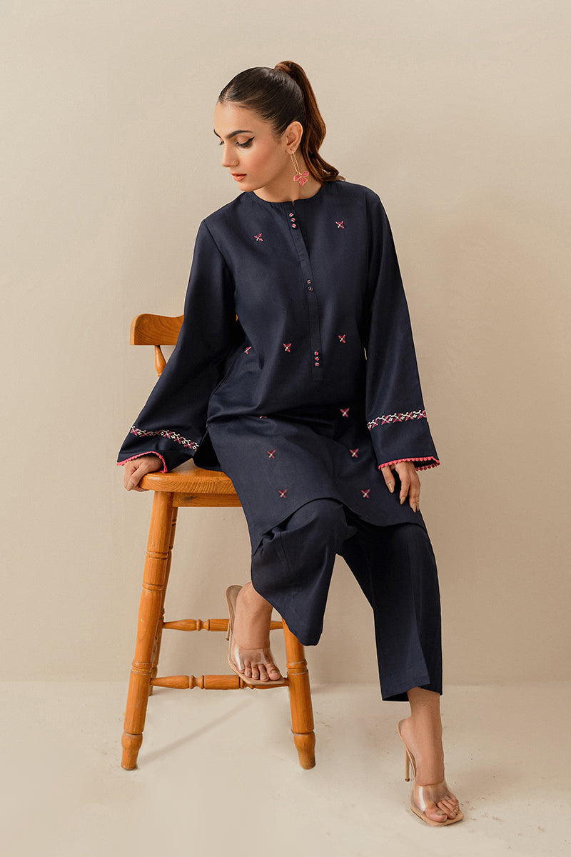 Experience the charm of winter with Voila Blue. The straight shirt is adorned with meticulous embroidery details and paired with comfy culottes to add a modern touch, creating a perfectly balanced and stylish ensemble.