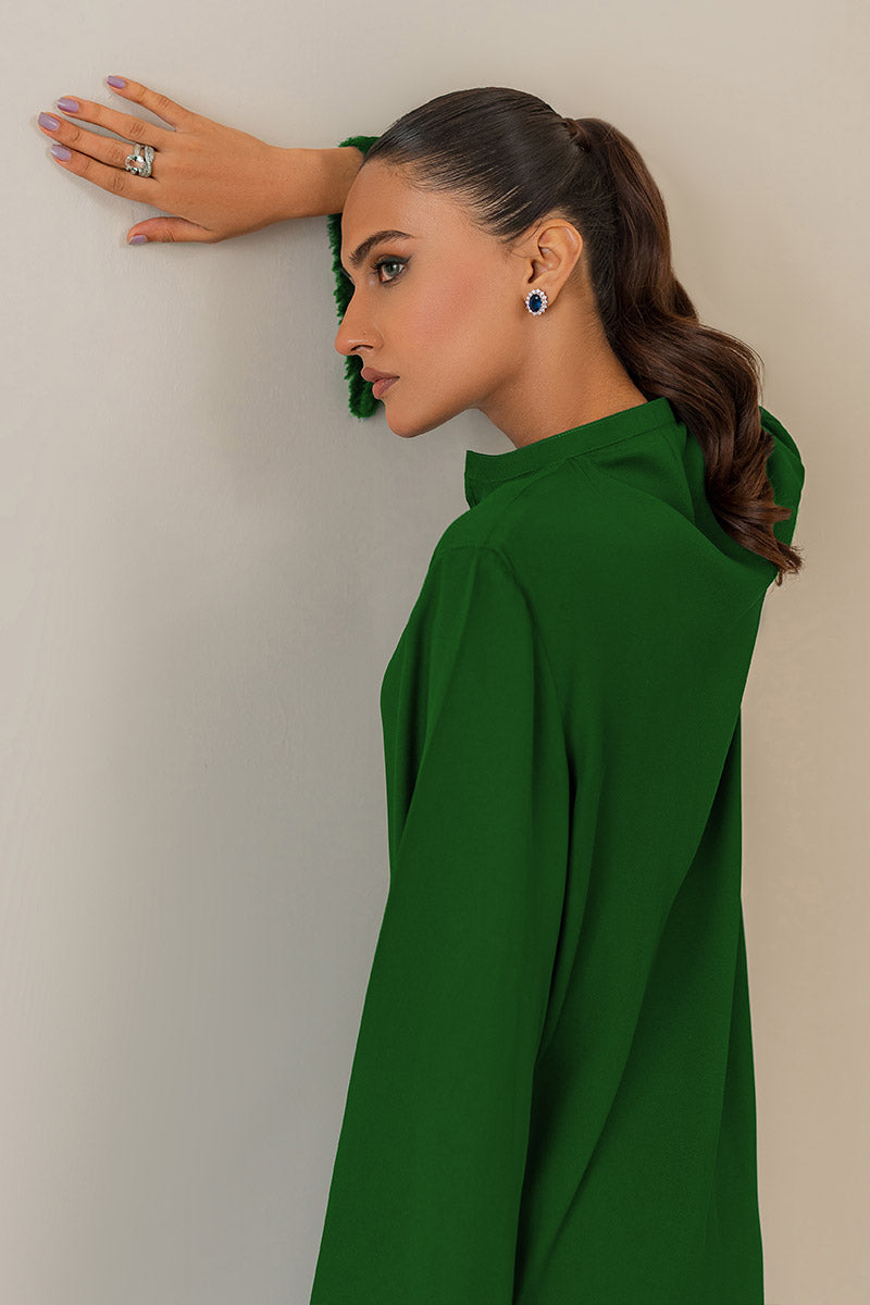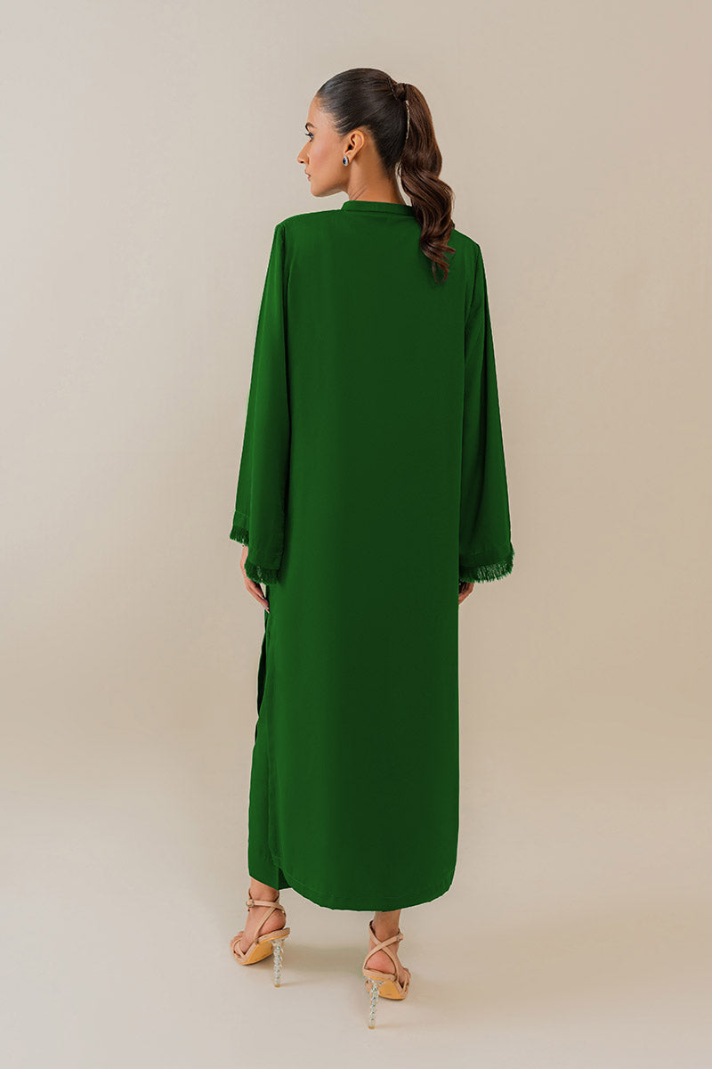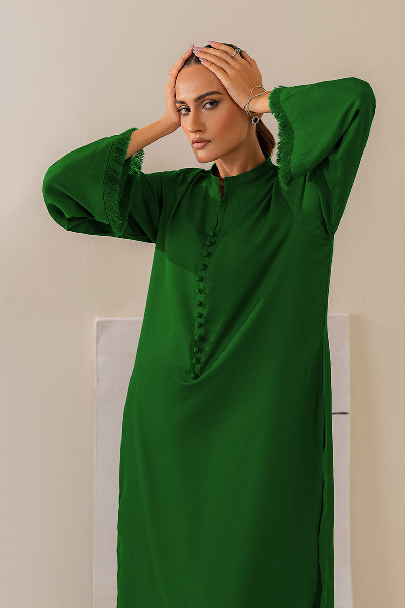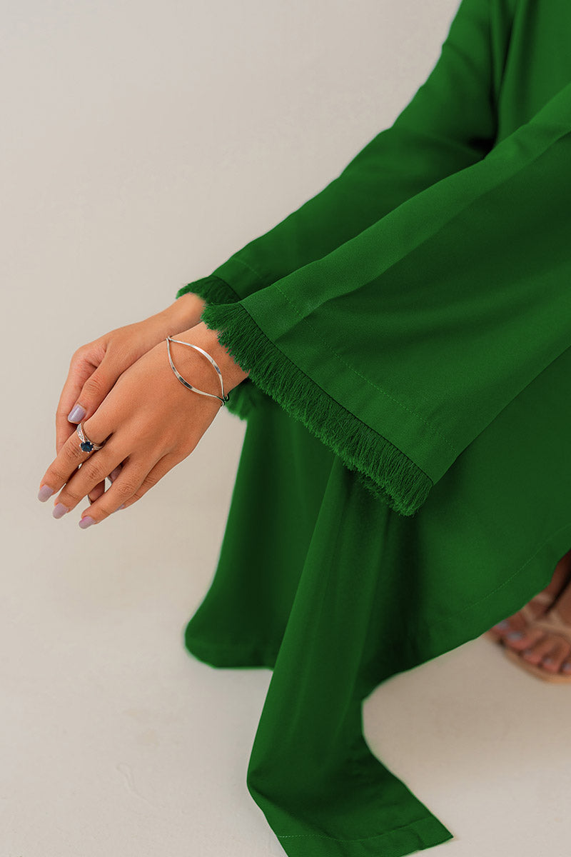 Zenara - a stylish two-piece outfit. Adorned with fashionable loop buttons and subtle frayed edges, this ensemble effortlessly combines relaxed comfort with a touch of luxury. It comes perfectly matched with straight trousers for an easy and coordinated look.