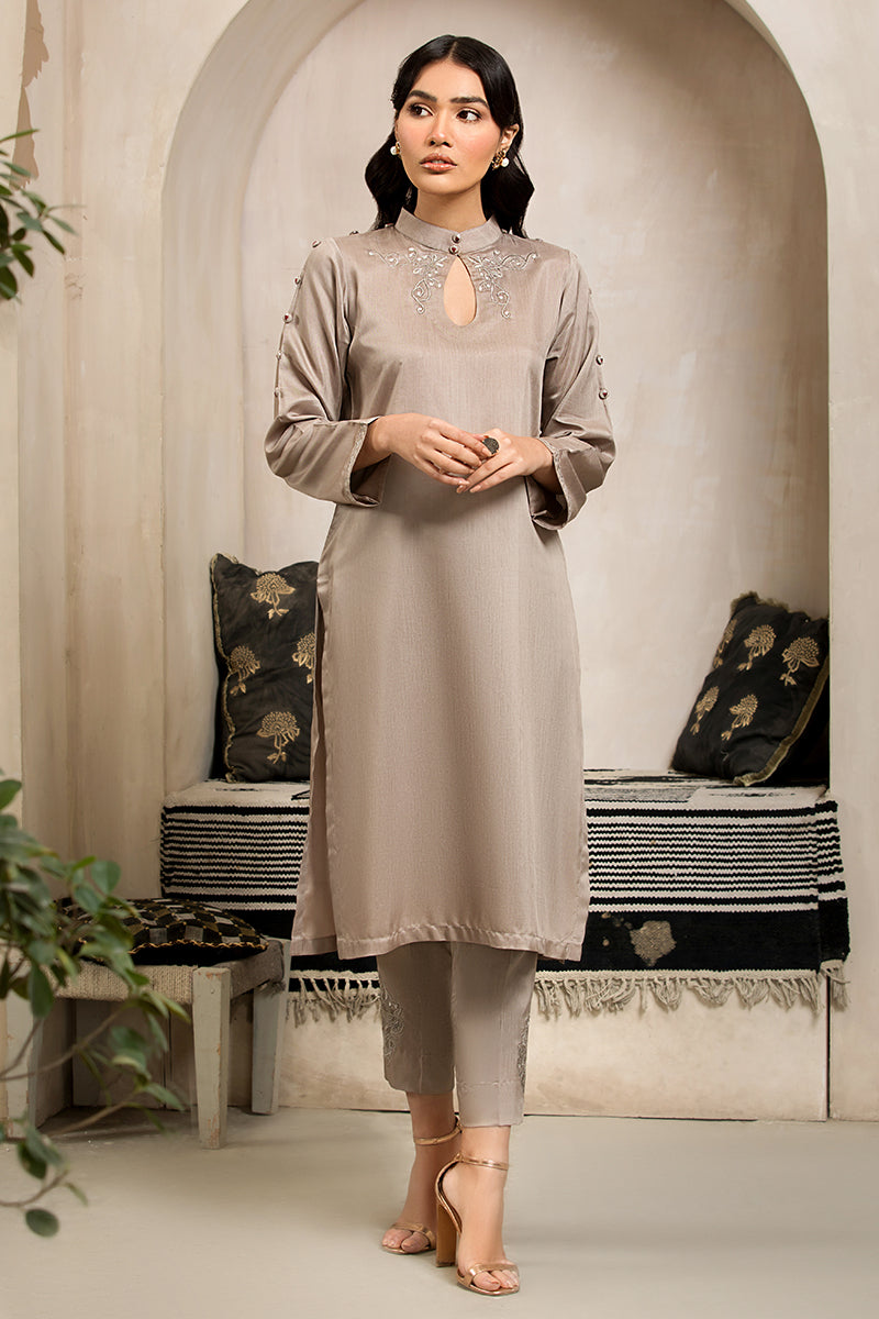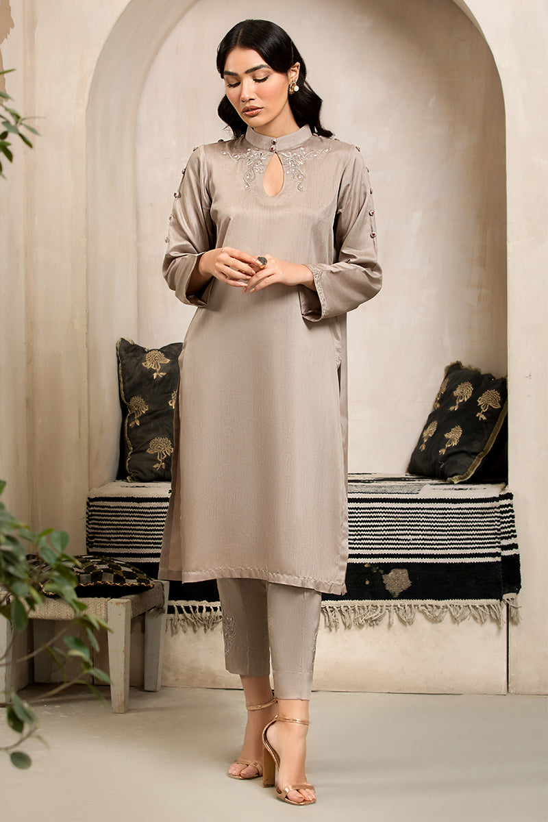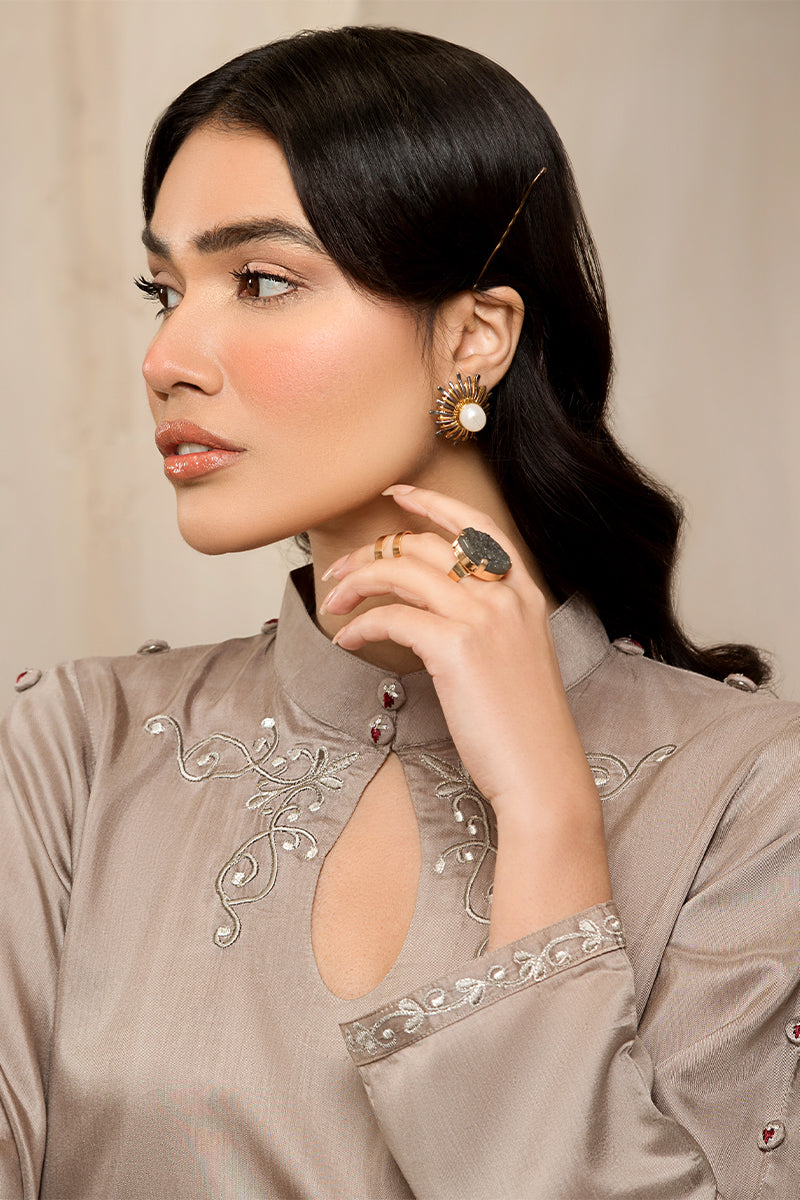 Effortless to style, "Zuri" features a contemporary key hole neckline on our classic straight shirt silhouette. Enhanced with a tilla embroidered neckline and button detail at the sleeves. Add this versatile outfit to your wardrobe for timeless elegance this festive season.