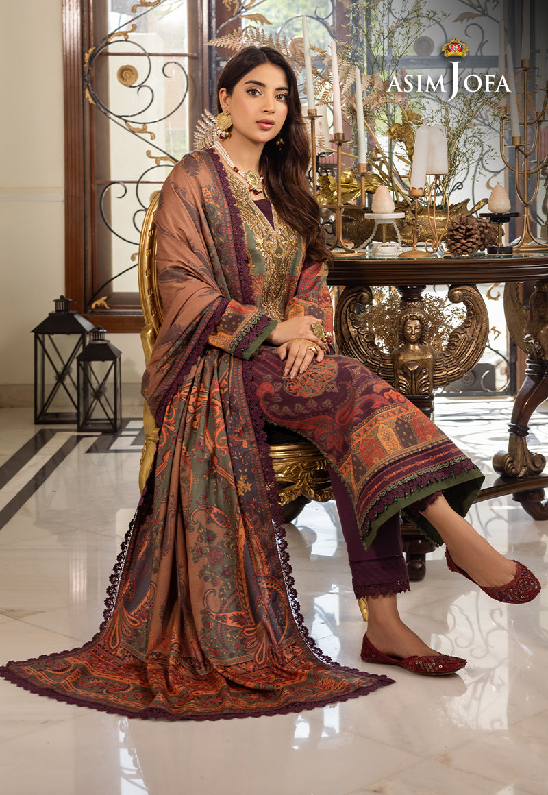 Unwind in the allure of this purple masterpiece from Aira's Winter Shawl Collection designed to adorn you with elegance and grace. The neckline of the outfit is adorned with intricate floral embroidery that adds sophistication and charm to your ensemble. Complementing this is a printed shirt adorned with floral motifs, creating a harmonious dance of patterns. This captivating outfit boasts a printed linen shawl, showcasing a delightful paisley print in enchanting bold color shades —a visual ode to the winter's bloom. Soft as a cherished memory, cozy as a heartfelt embrace, the shawl is your ideal companion for the winter season.