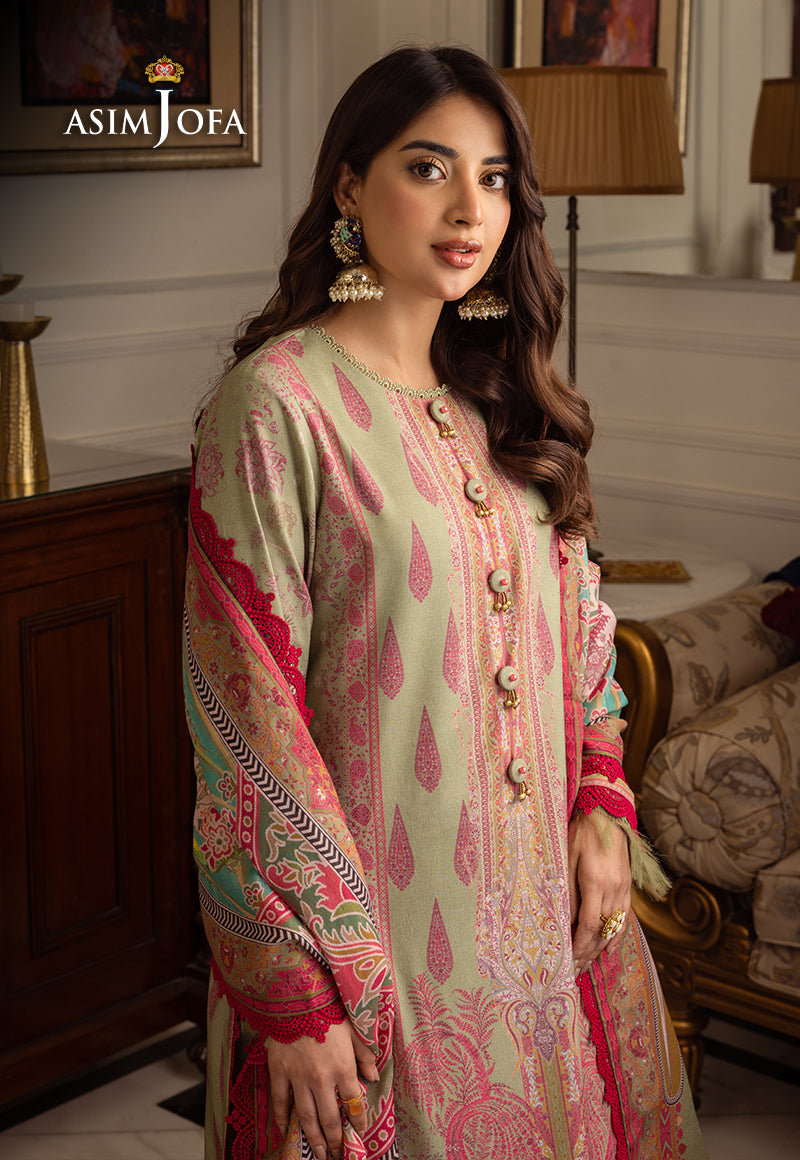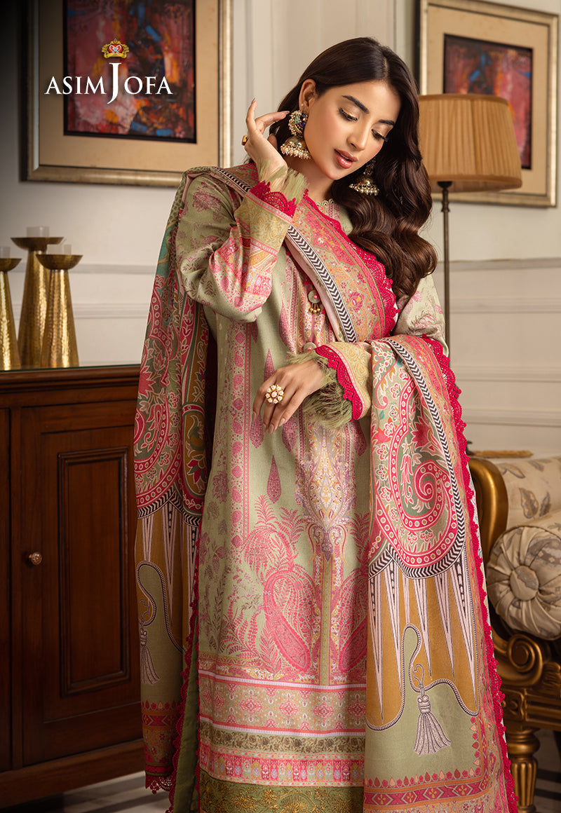 Embark on a journey with this ensemble that unfolds like a canvas of fresh, vibrant dreams. The light green canvas is a meadow of possibilities, kissed by a gentle dance of pink prints that tell a contemporary tale of style. The patterns, a melodic fusion of paisleys and mixed motifs, create a visual symphony that captivates the senses. Completing this poetic ensemble with a moonlight shawl, a soft and luminous embrace that wraps you in the magic.