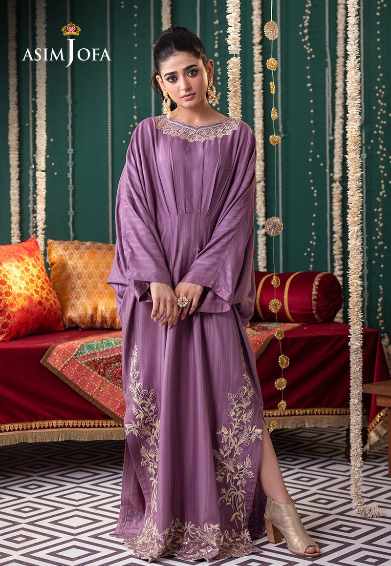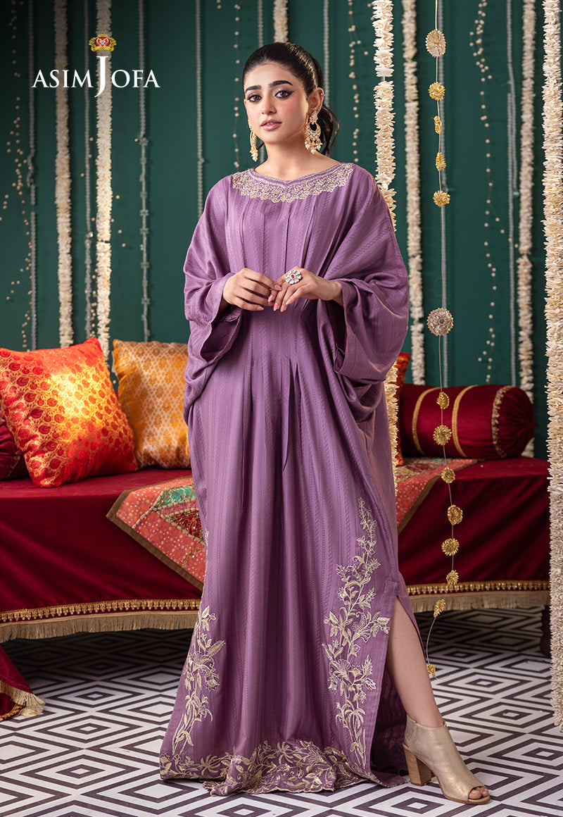 Let the golden floral embroidery on this kaftan transport you to a garden of timeless style and grace.