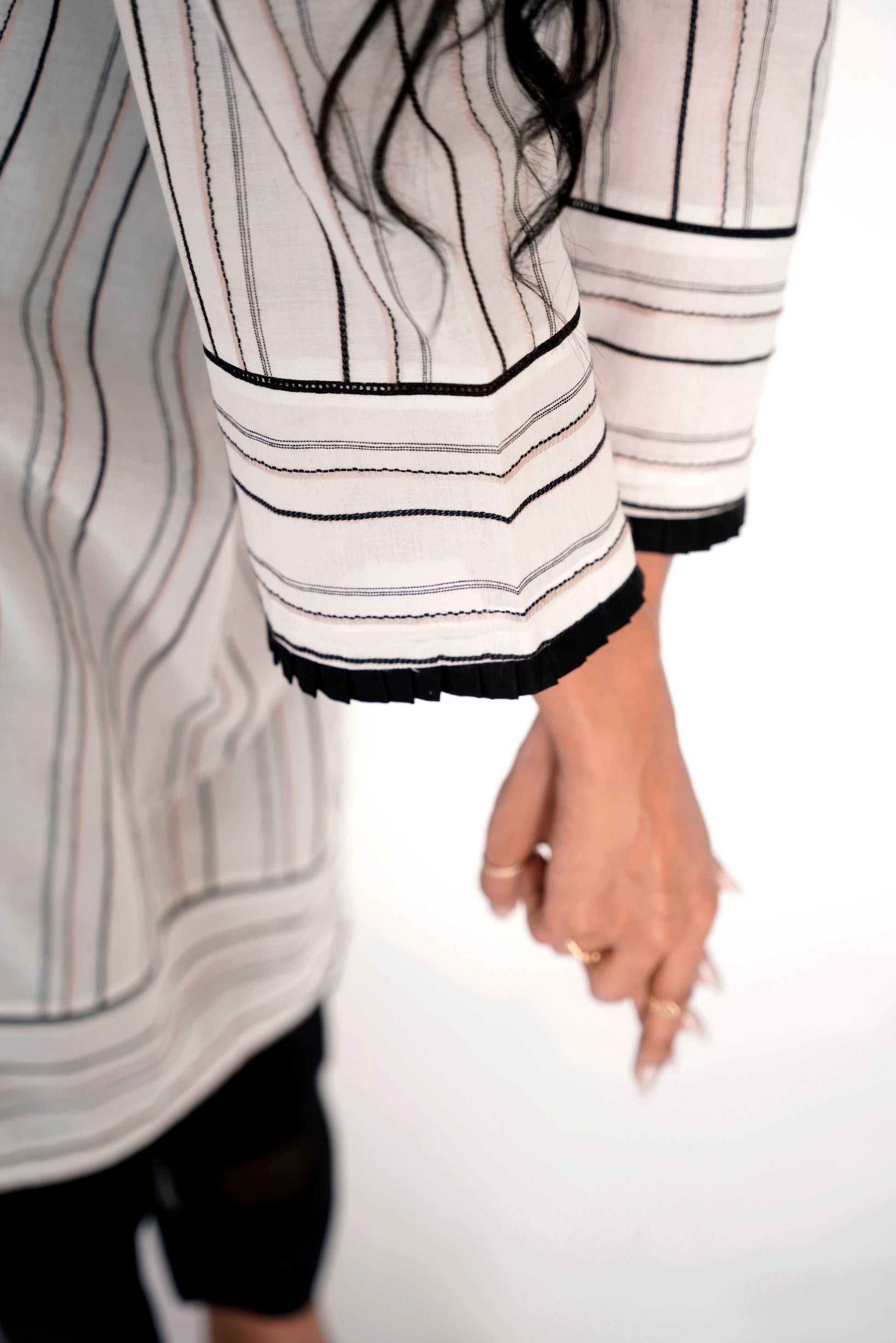 Casual Luxe Blue Button-Down Shirt with Thin Stripes