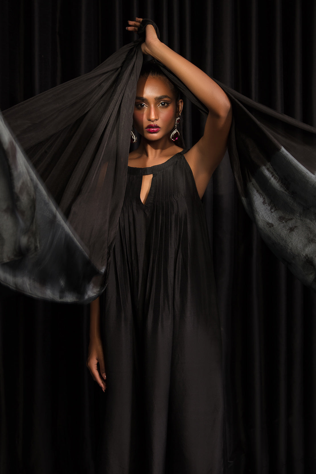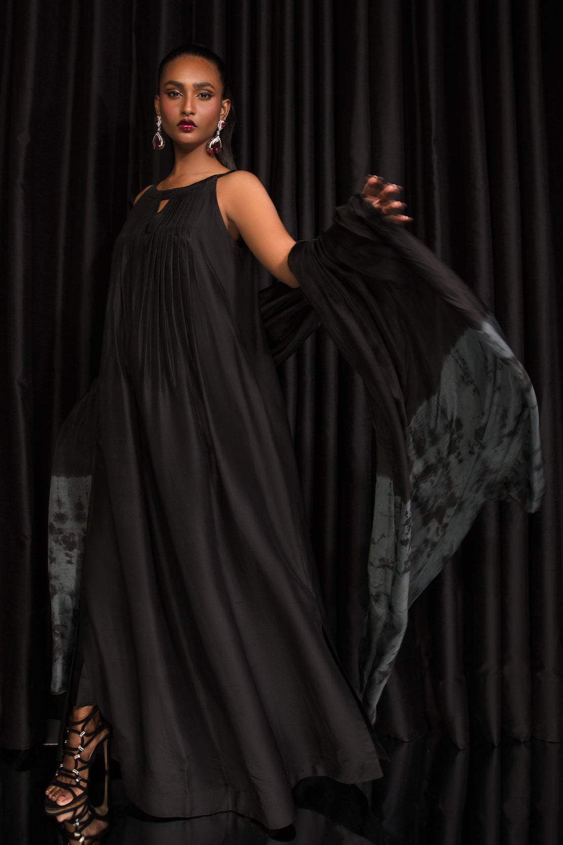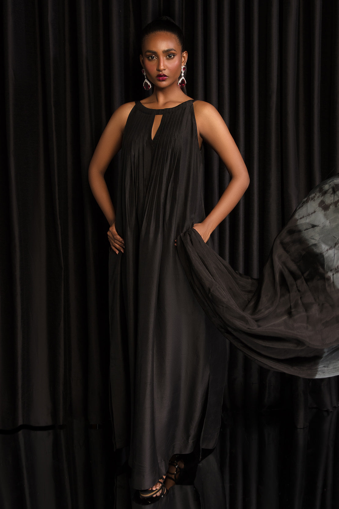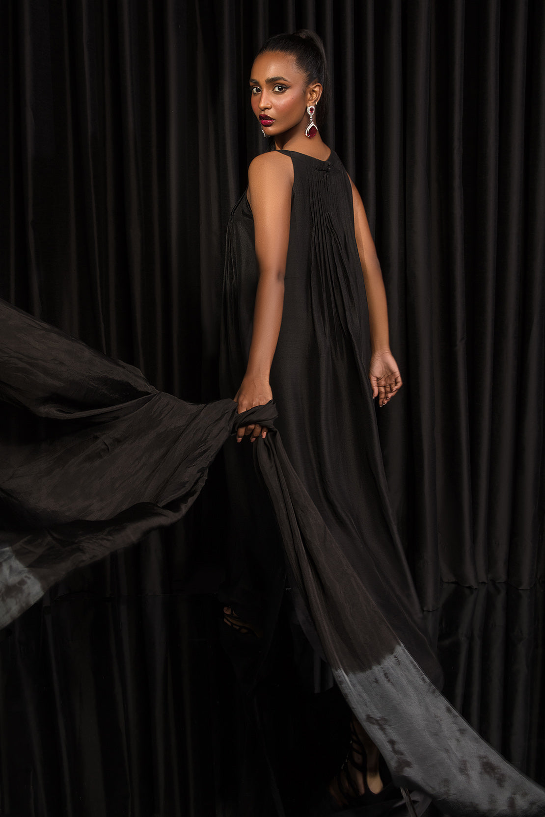 Made on pure raw silk to give enriched look to the garment, the sleeves are beautifully designed with modern cut work technique and paired with plain raw silk trouser and dupatta to make it beautiful yet persuasive.