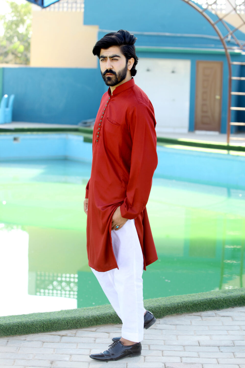Bareeq men casual wear maroon cambric cotton kurta 1pcs