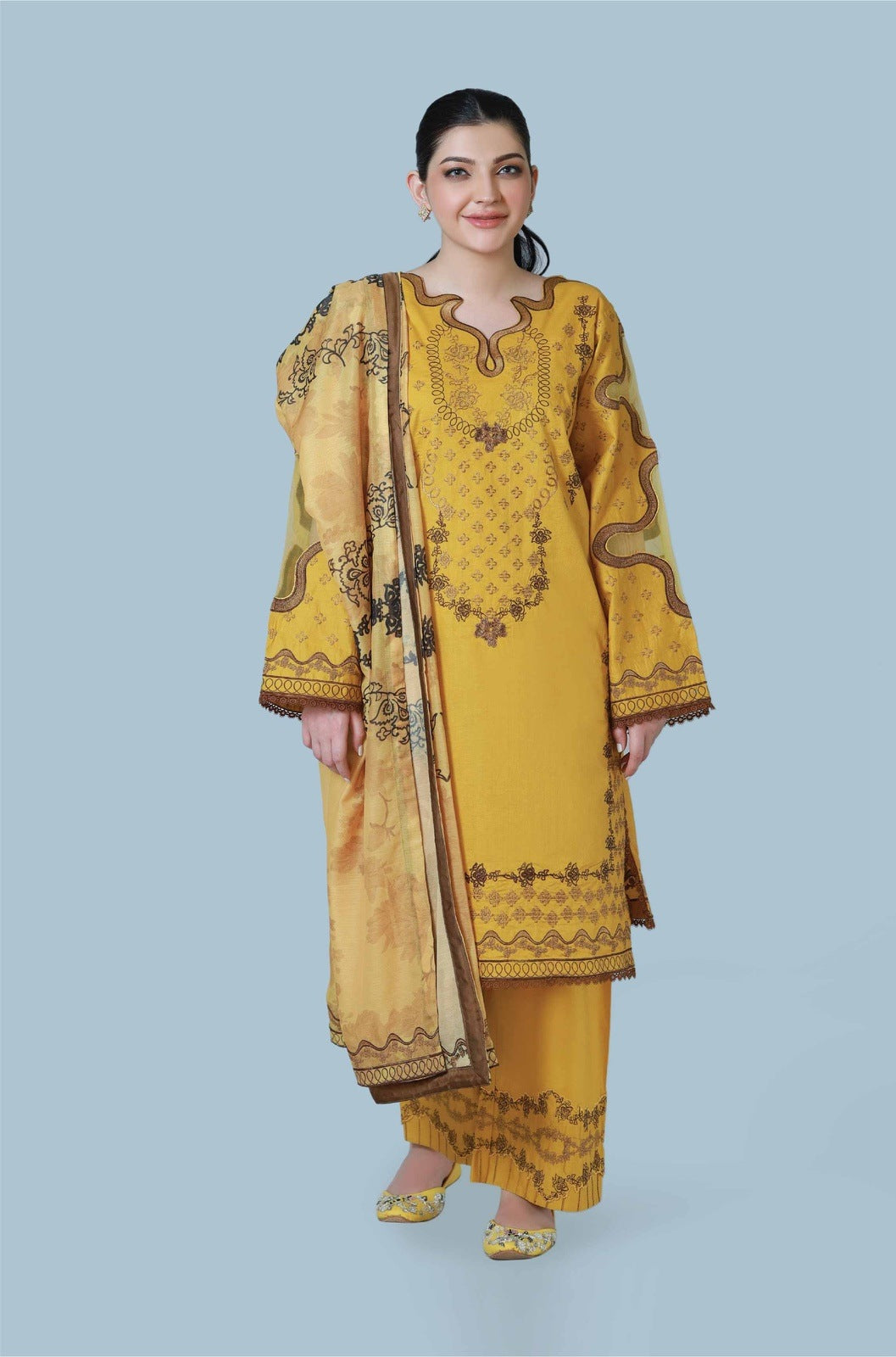 Bareeq Outfits - Mustard Muse 3 Piece Embroidered Stitched Suit