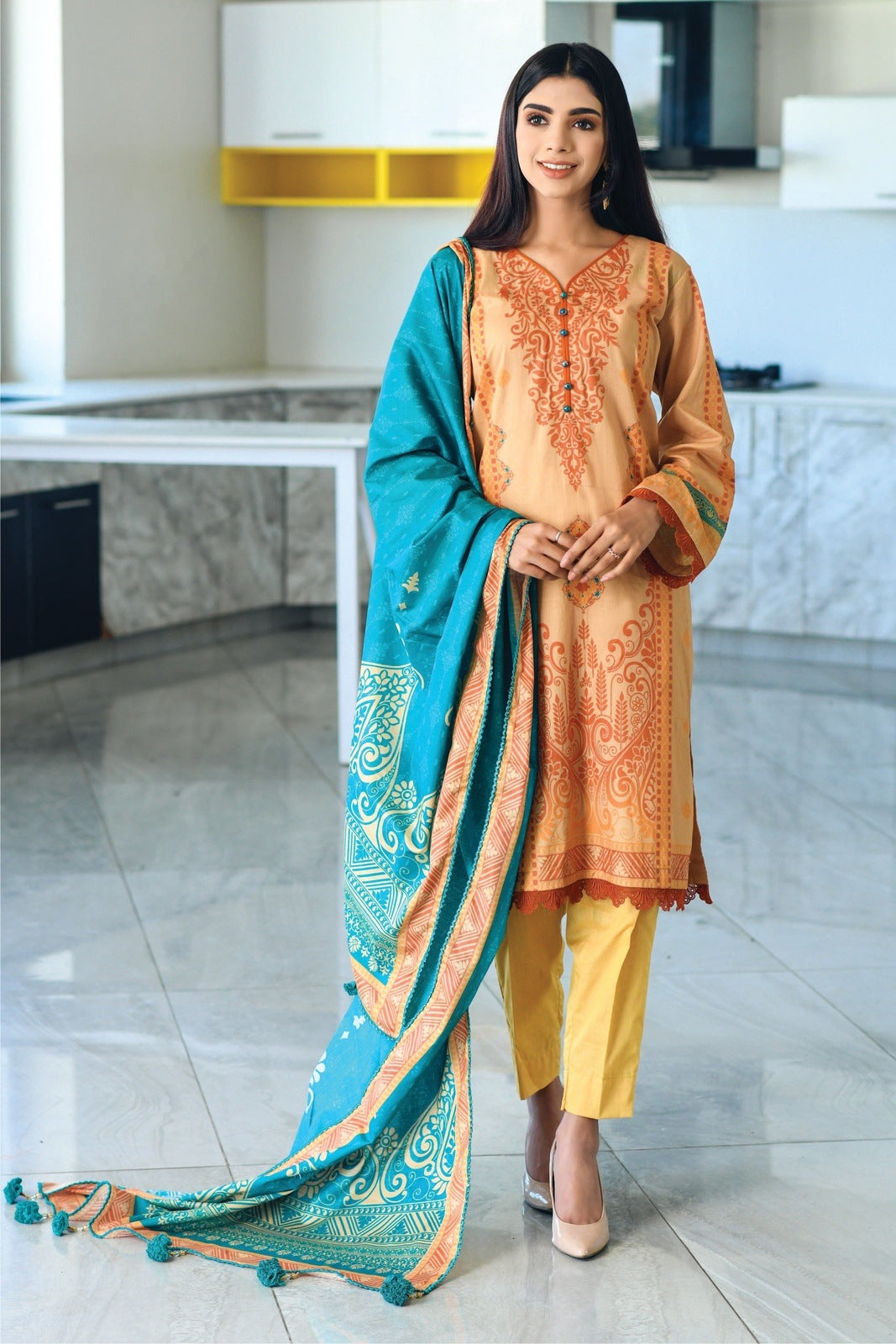 Bareeq Outfits - Orange Peach Printed Lawn – 3 PCS