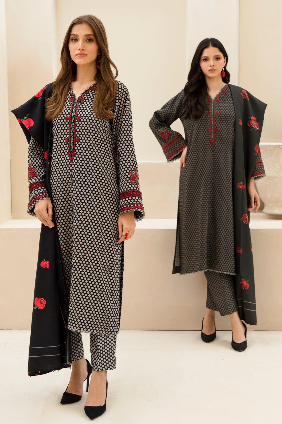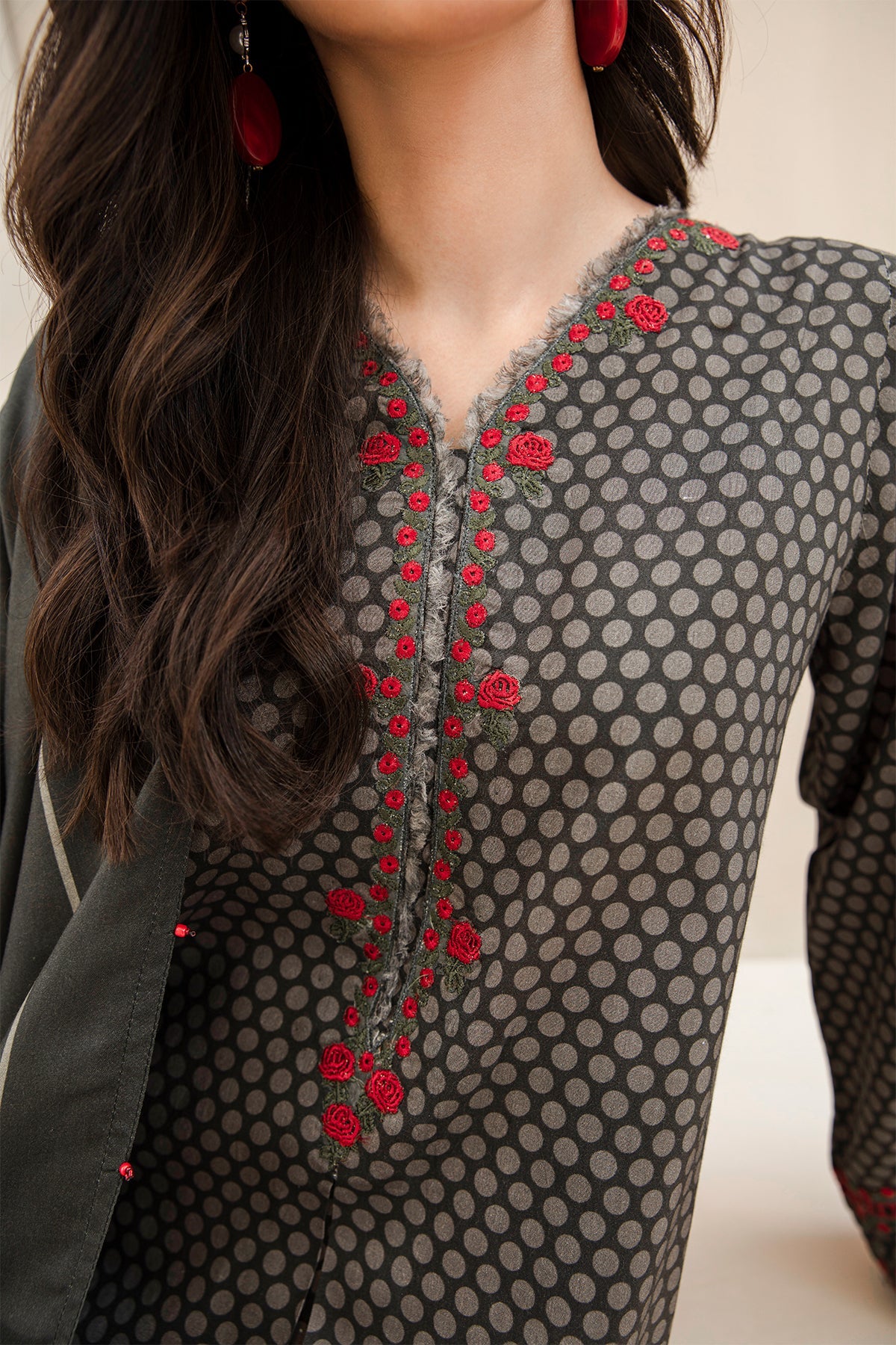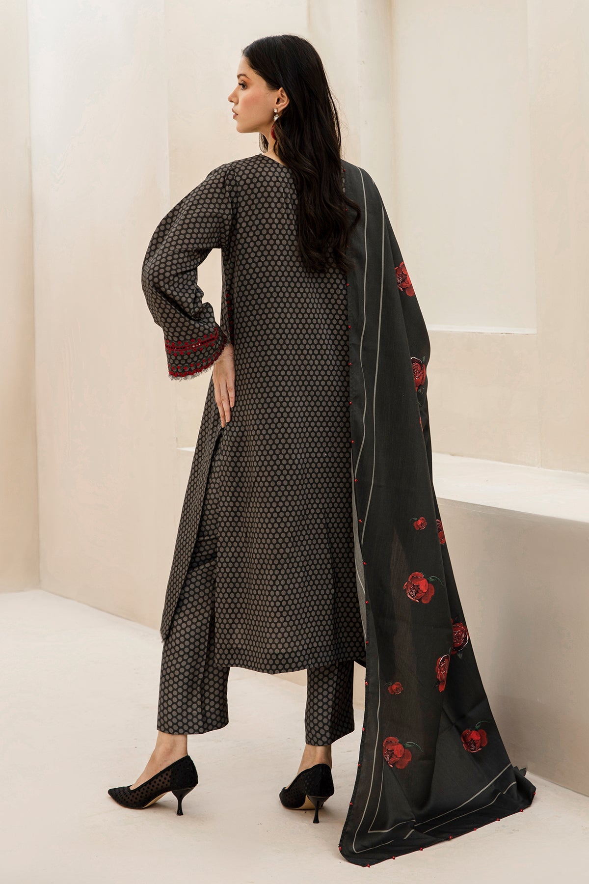 A digital print viscose shirt & trouser set featuringembroidered organza neckline patch,embroidered organza sleeves border,embroidered organza sleeves motif patch,embroidered organza pocket line,and a digital print viscose shawl.