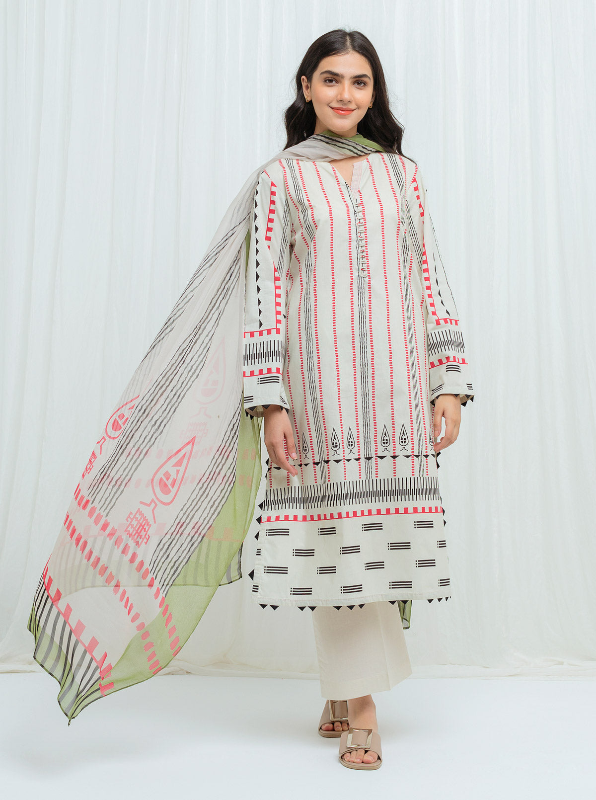 Printed Cambric Shirt: 2.9 MPrinted Blended Chiffon Dupatta: 2.5 MDyed Cambric Pants: 2.5 MFabric:Cambric