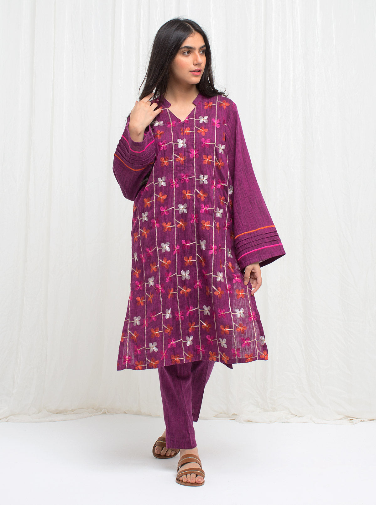 Heavy Embroidered Shaded Khaddar Front: 1 MDyed Shaded Khaddar Back & Sleeve: 1.5 MShaded Khaddar Pants: 2.5 MCare Instructions: "Soak In Water Before Stitching"Fabric:Khaddar