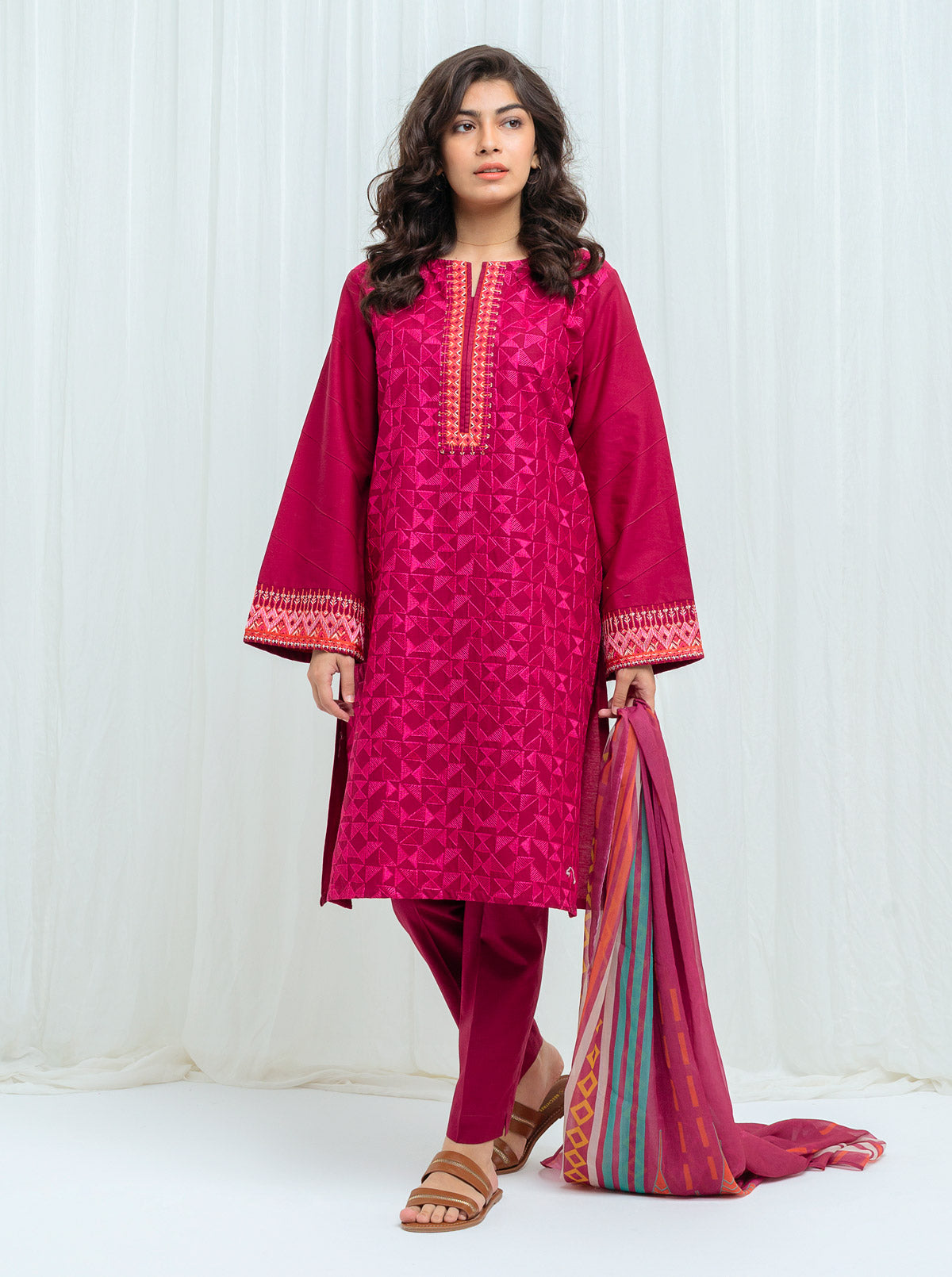 Heavy Embroidered Cambric Front: 1 MDyed Cambric Back and Sleeve: 1.5 MEmbroidered Neckline Patti: 0.7 MDigital Printed Blended Chiffon Dupatta: 2.5 MFabric:Cambric