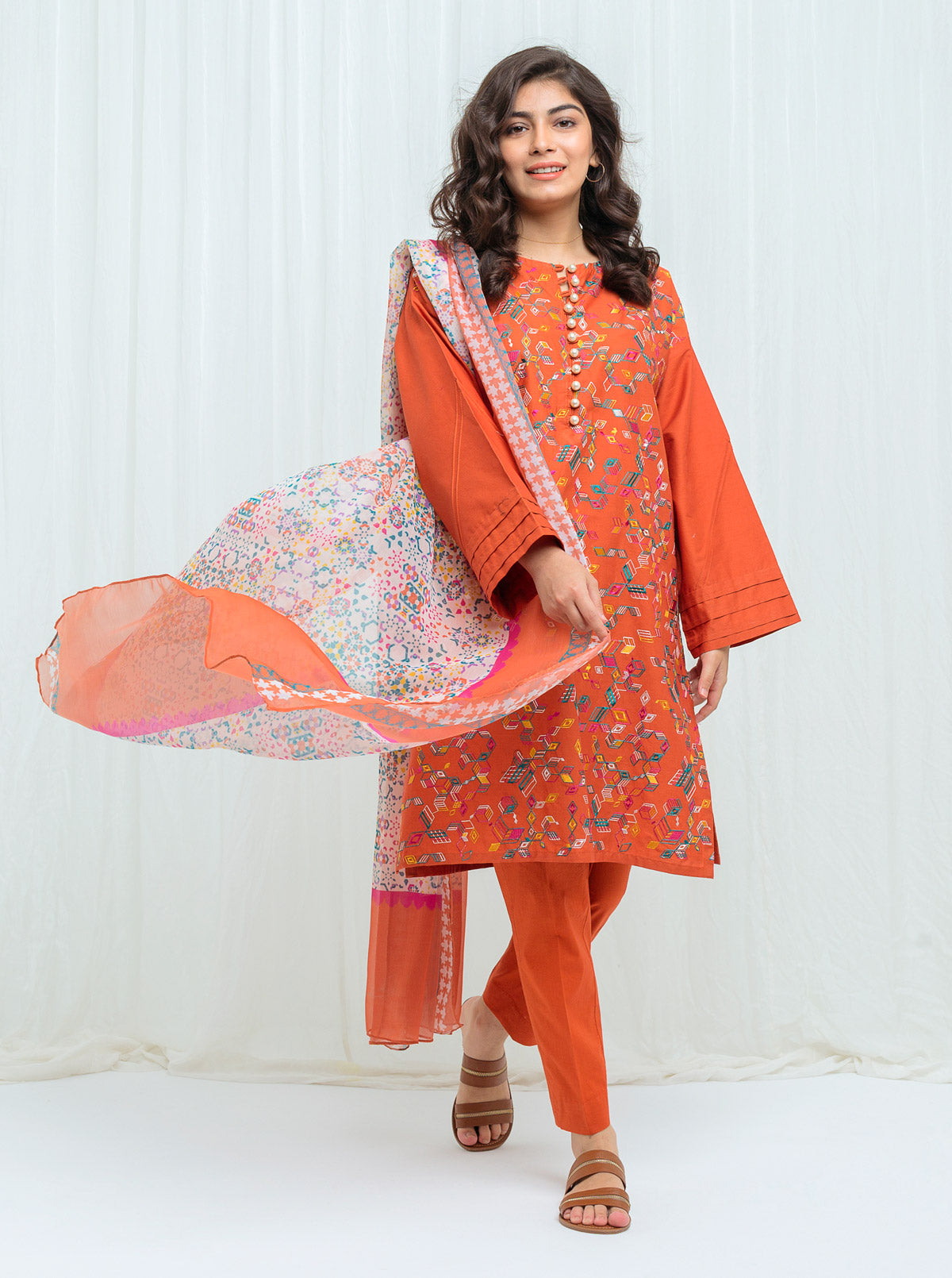 Heavy Embroidered Cambric Front: 1 MDyed Cambric Back and Sleeve: 1.5 MDigital Printed Blended Chiffon Dupatta: 2.5 MFabric:Cambric