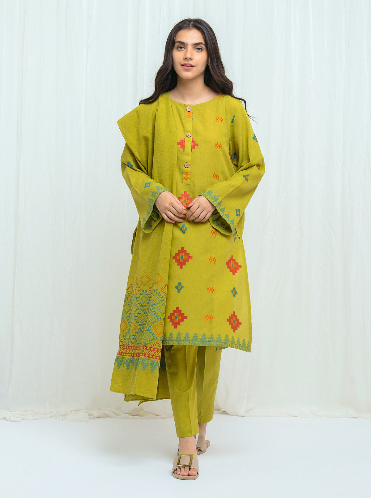 Jacquard Front: 1.14 MYarn Dyed Back: 1.14 MJacquard Sleeves: 0.5 MJacquard Dupatta: 2.5 MFabric:Jacqurd