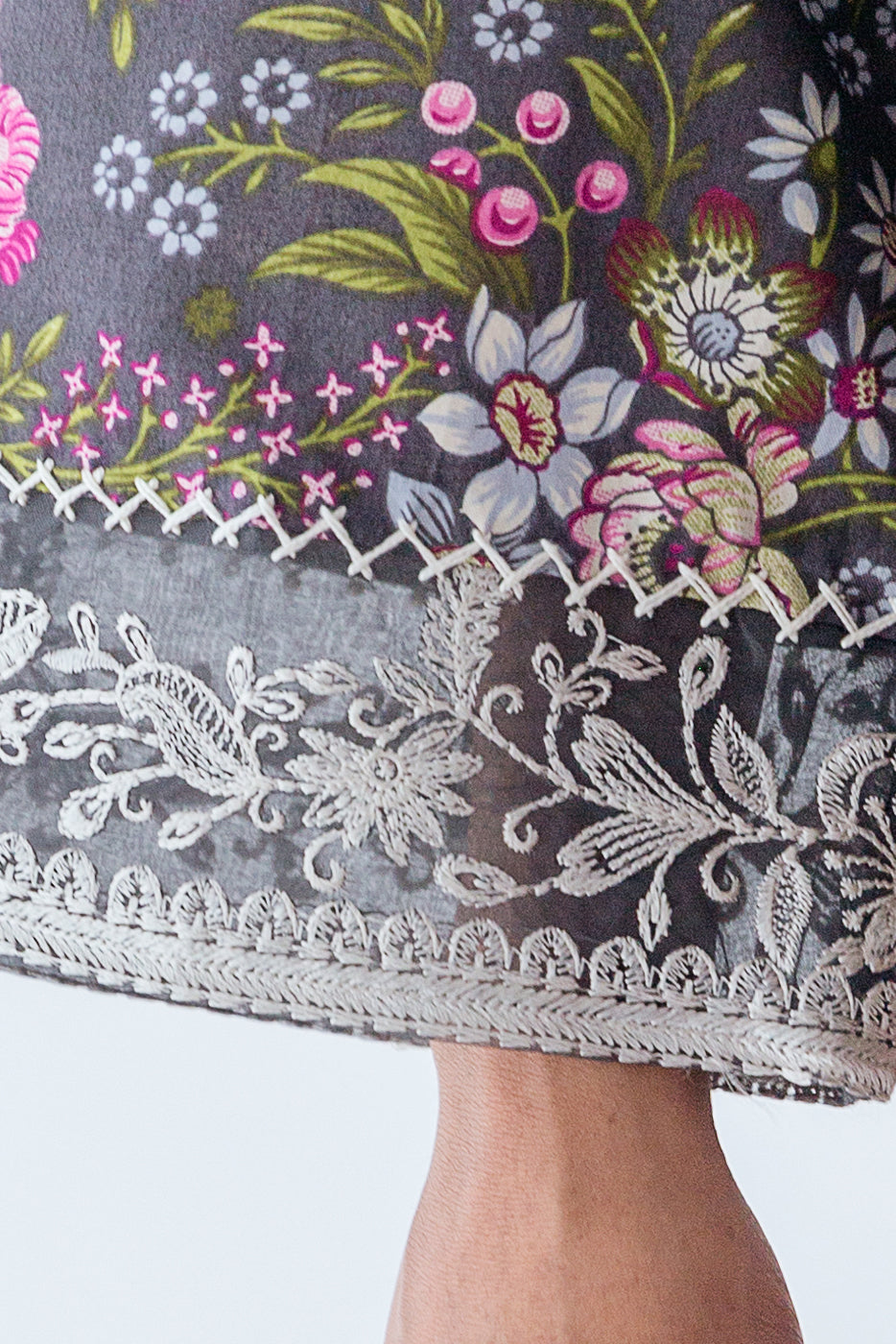 Beechtree - 3 PIECE - EMBROIDERED CAMBRIC SUIT - EBONY BLOOM (UNSTITCHED)
