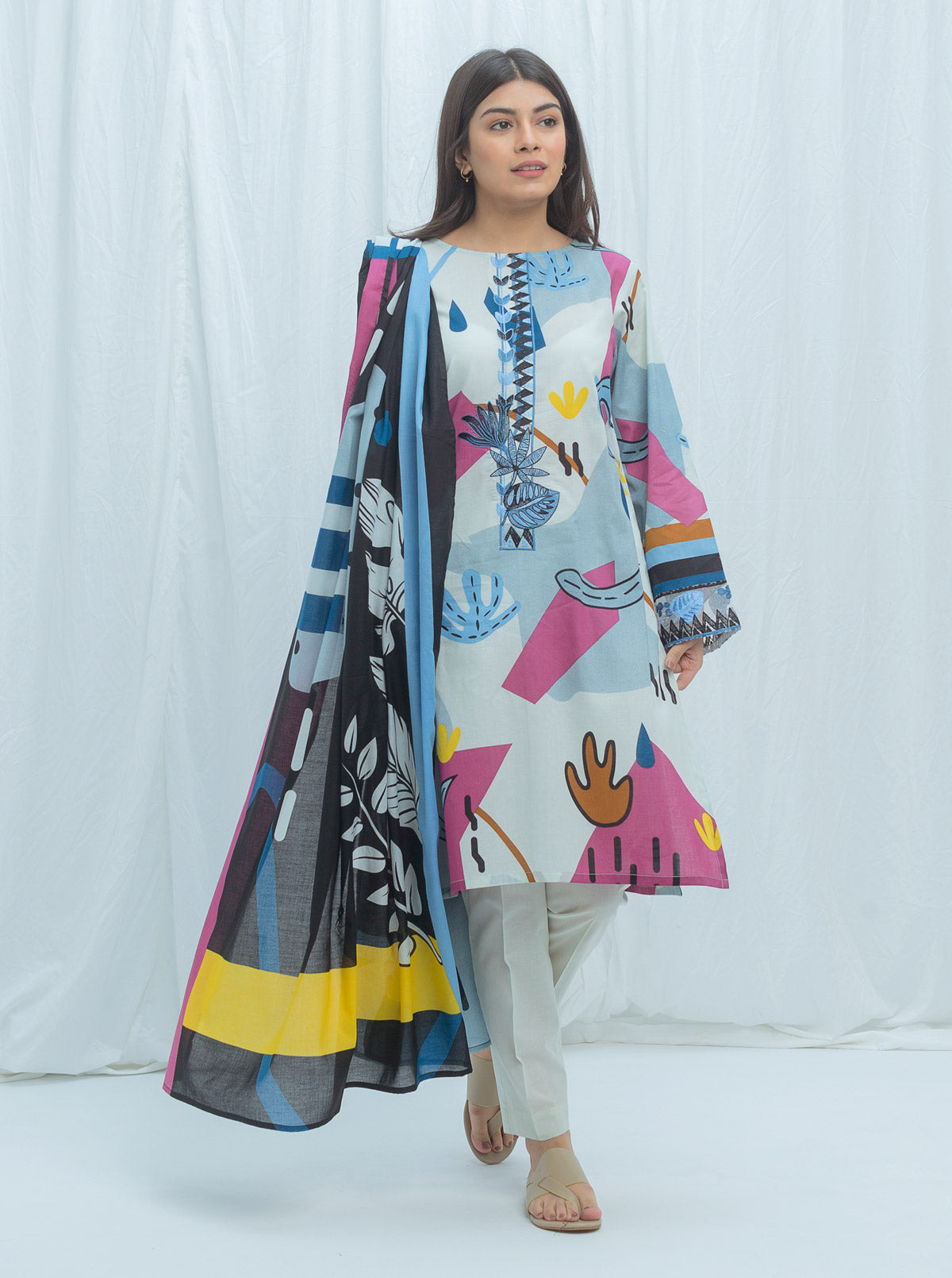 2.9 Mtrs Printed Lawn Shirt With Embroidery , 0.7 Mtrs Embroidered Sleeve Patti, 2.5 Mtrs Printed Lawn Dupatta