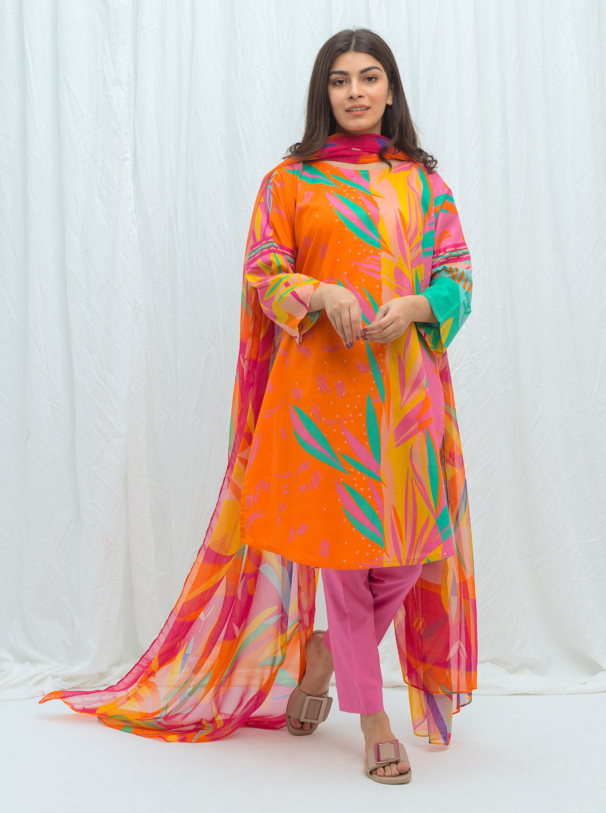 2.9 Mtrs Printed Lawn Shirt, 2.5 Mtrs Printed Blended Chiffon Dupatta