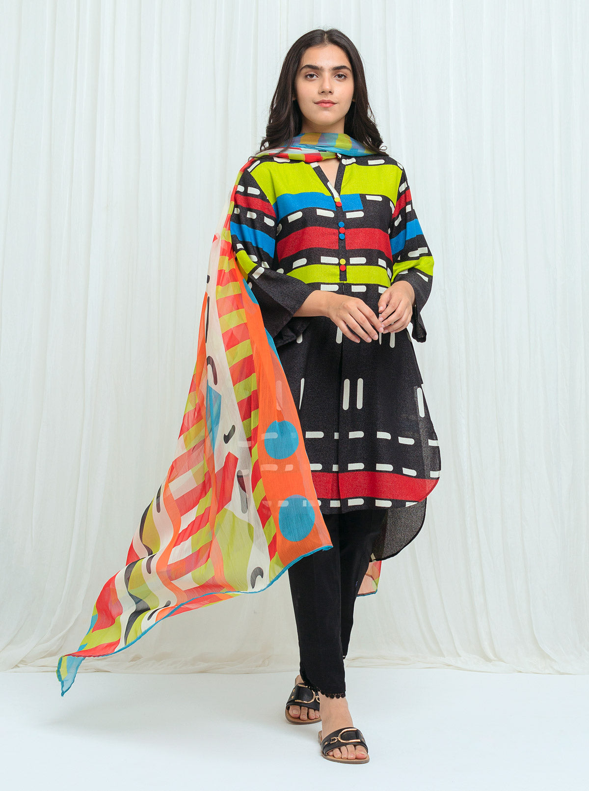2.9 M Printed Karrandi Shirt 2.5 M Printed Blended Chiffon Dupatta 2.5 M Dyed PantsFabric: Karandi