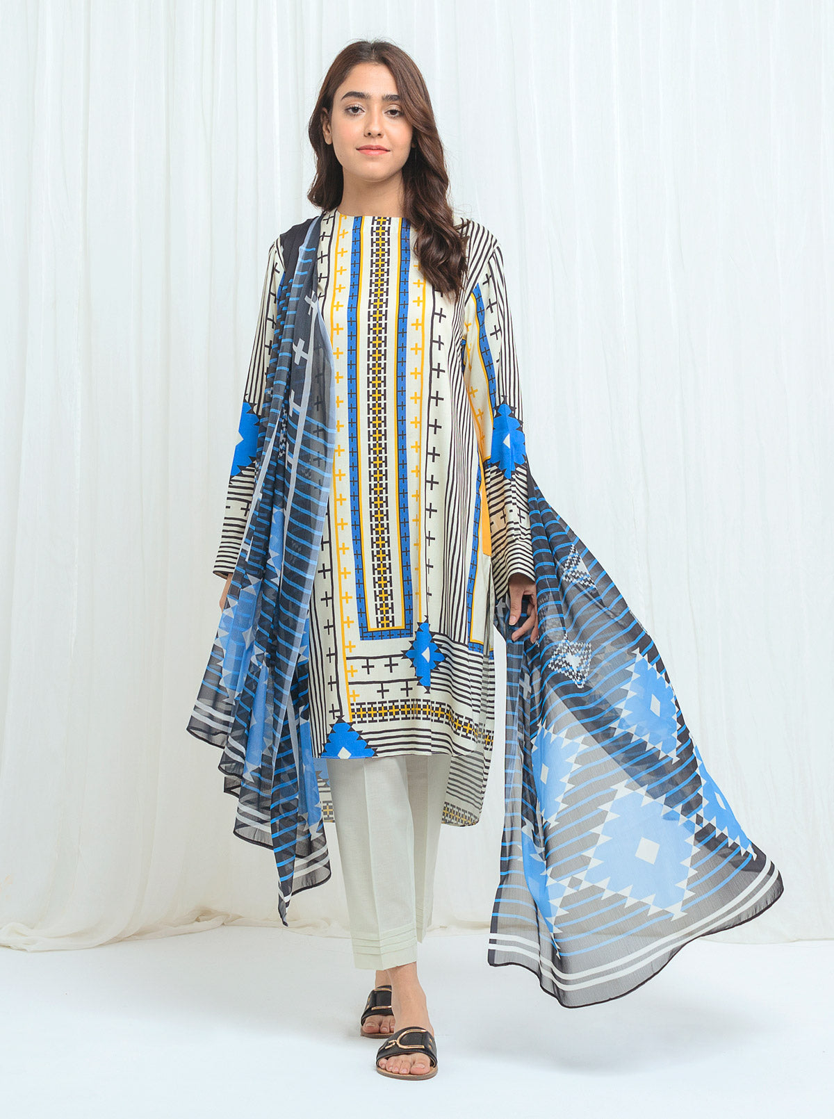 2.9 Mtr Digital Printed Linen Shirt 2.5 M Printed Blended Chiffon Dupatta 2.5 MDyed PantsFabric: Linen