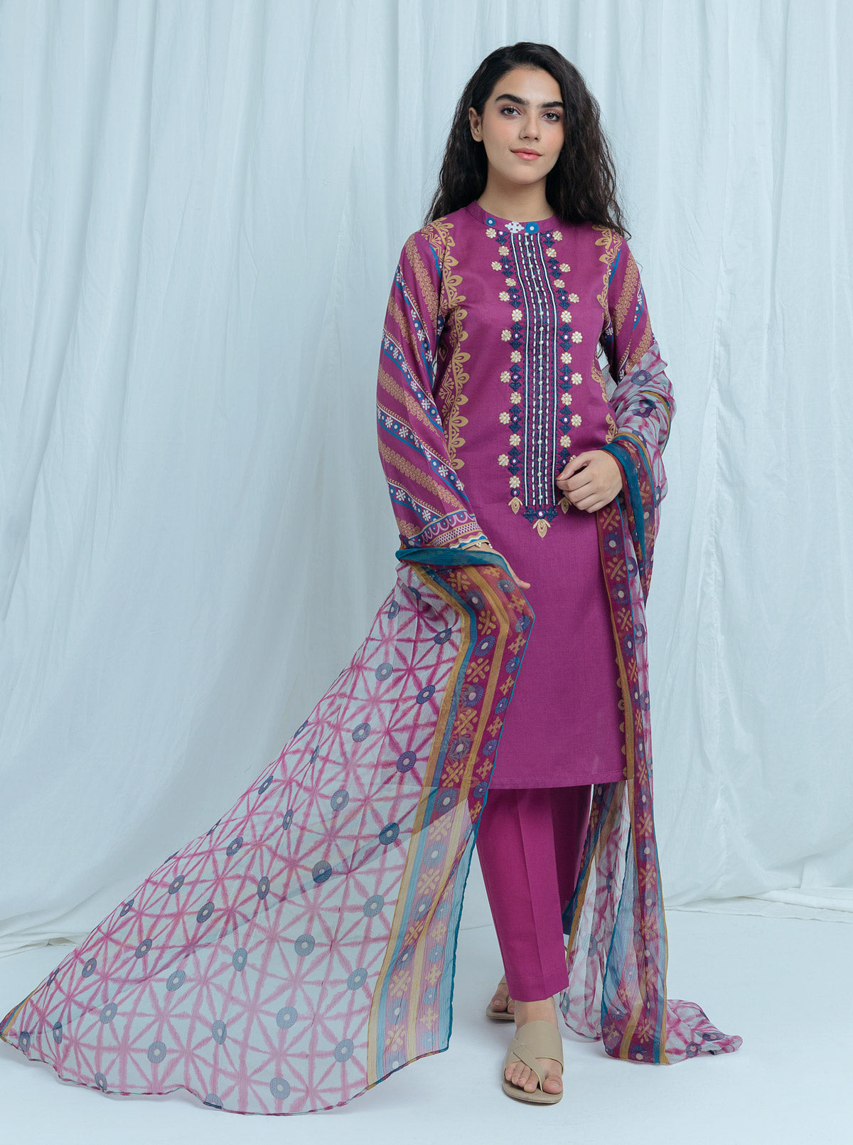 2.5 Mtrs Printed Lawn Shirt, 0.7 Mtrs Embroidered Neckline, 2.5 Mtrs Printed Blended Chiffon Dupatta