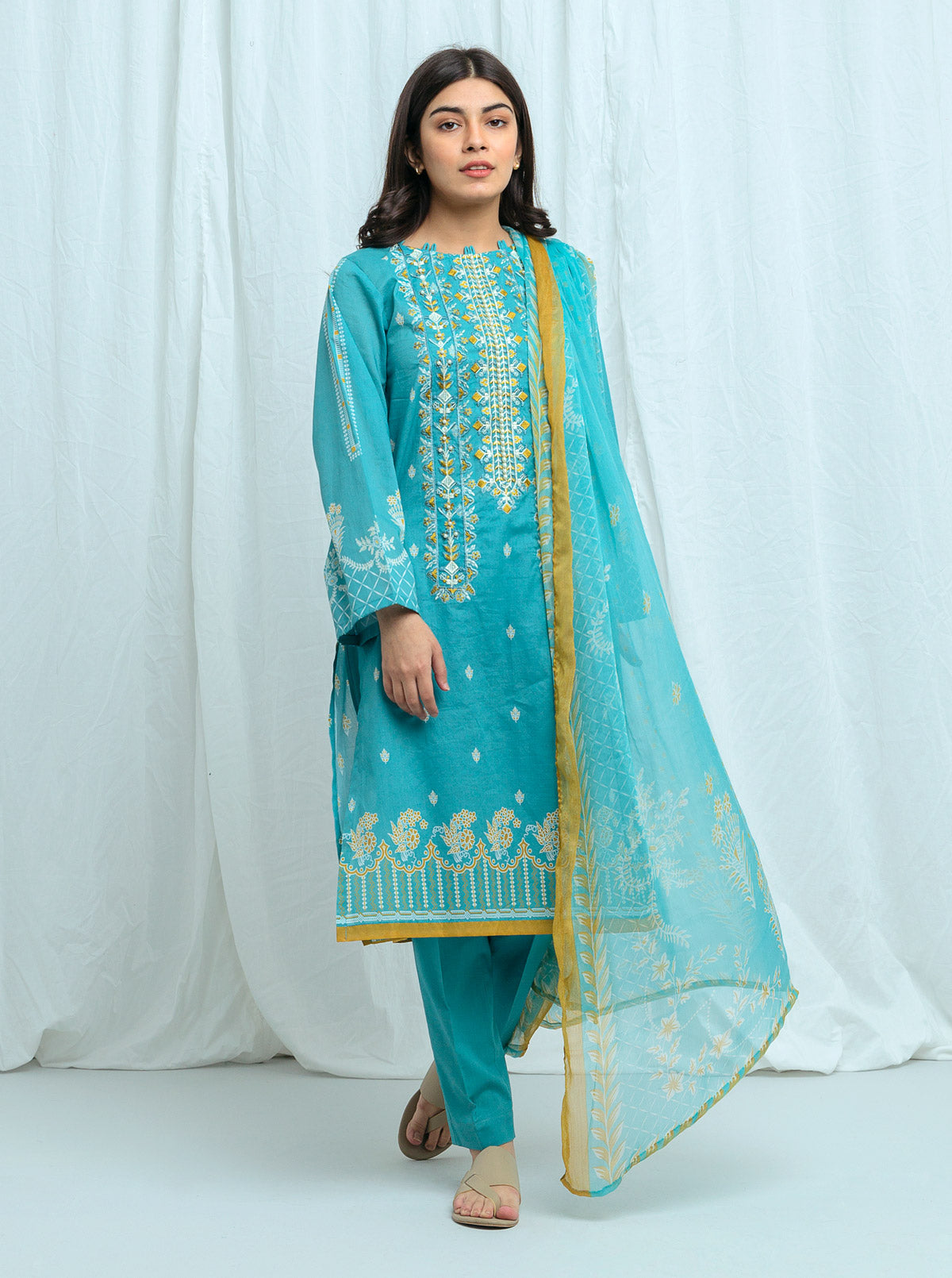 2.9 Mtrs Printed Lawn Shirt, 0.7 Mtrs Embroidered Neckline, 2.5 Mtrs Printed Blended Chiffon Dupatta
