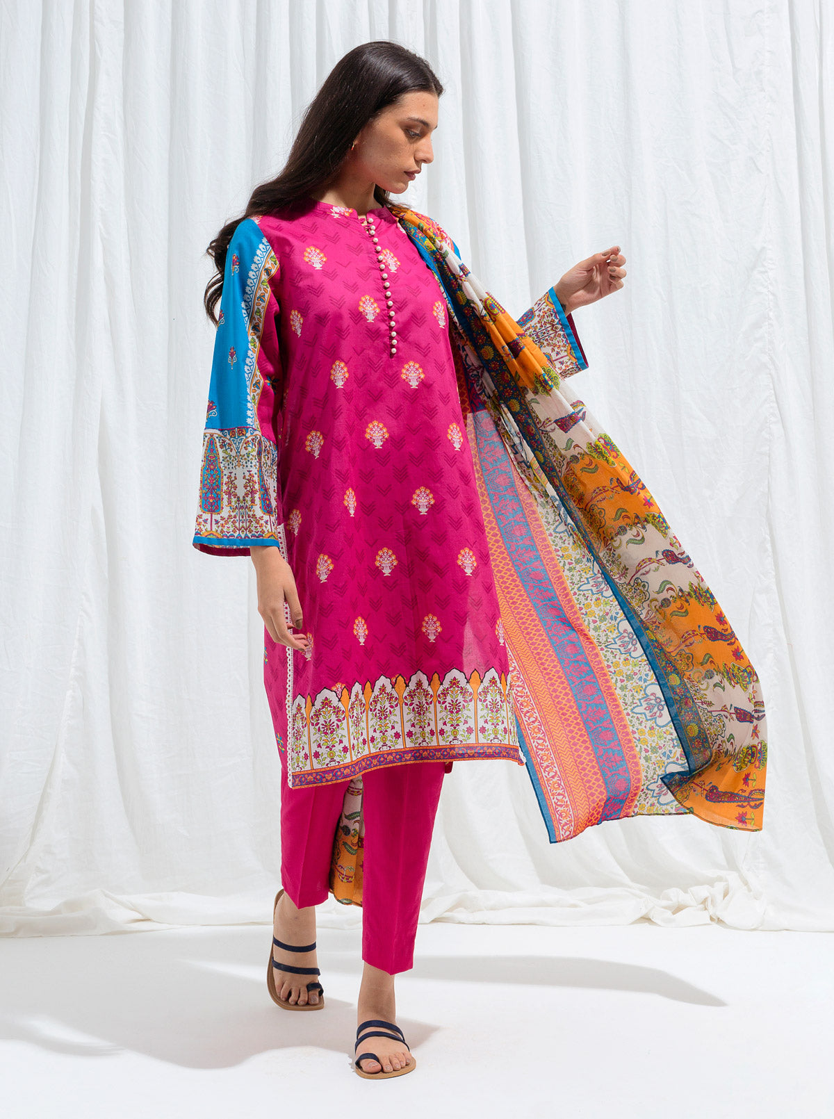 2.9 Mtrs Printed Lawn Shirt, 2.5 Mtrs Printed Lawn Dupatta, 2.5 Mtrs Dyed Pants
