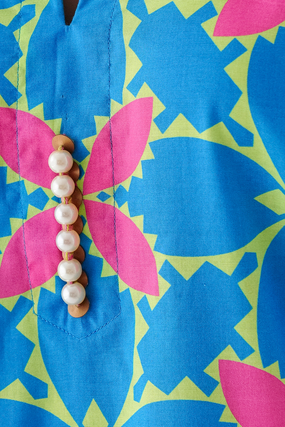 Printed Kurta With Round Neck And Slit. Hand Embellishment On Neckline. Sleeves With Folded Cuff. Straight Hem.Fabric:Printed CambricWhat You'll Get: Shirt