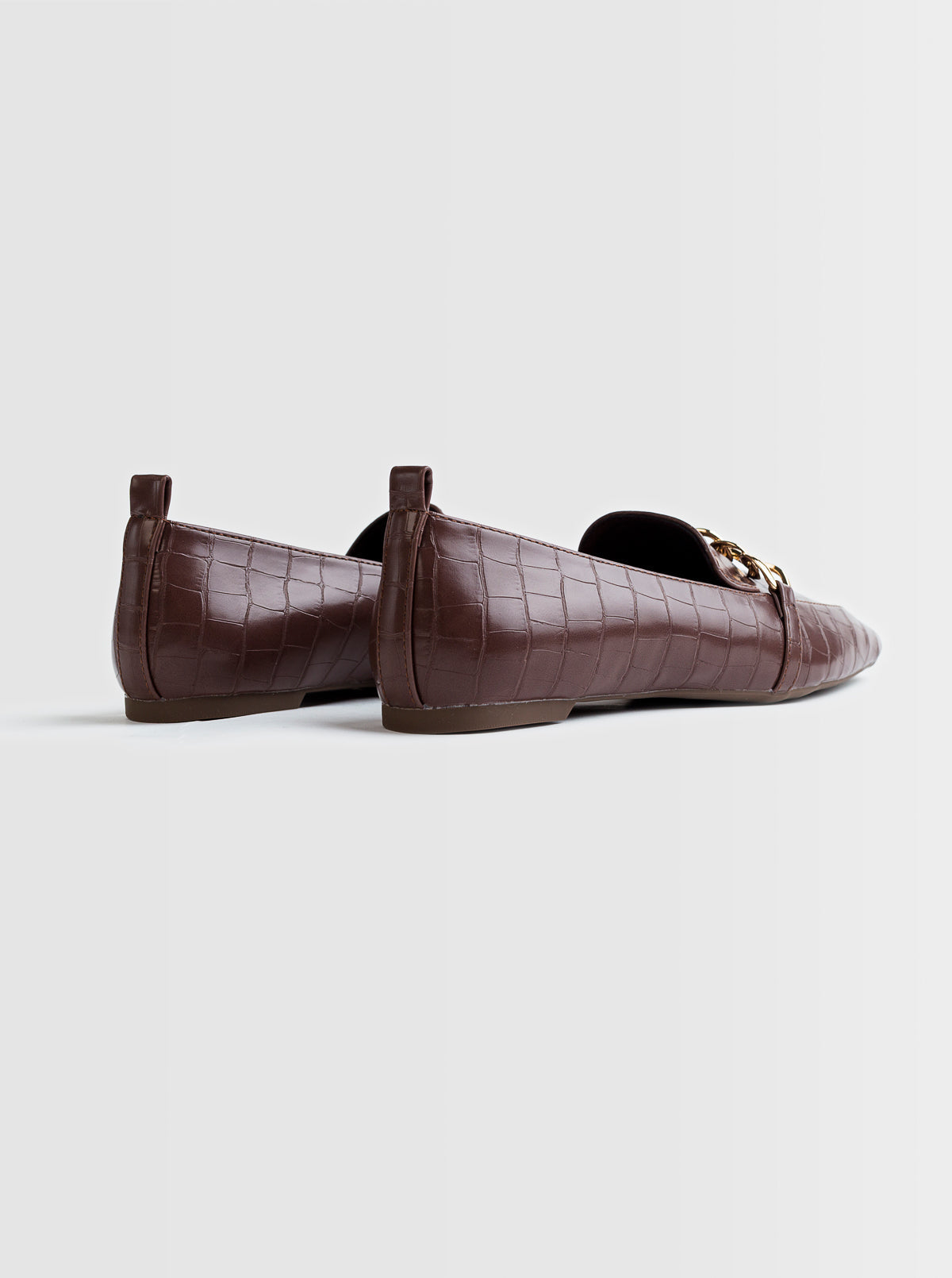 Gold mettalic detail loafers with a buffed leather design.