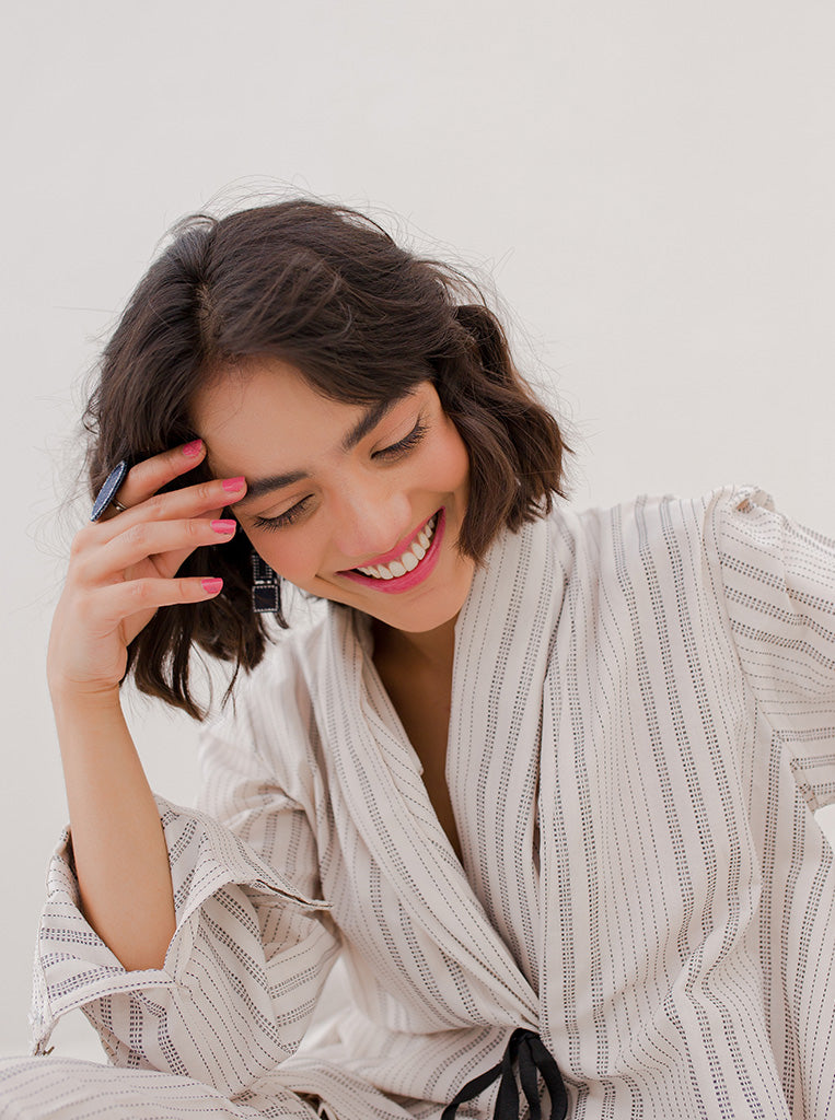 Co-Ord Set Top With Shawl Collar, Ribbon Detail, Cuffed Sleeves With Button Opening. Co-Ord Set Bottom With Black Ribbon Trim Detail On Pockets And Folded Cuffs On Hem.Fabric: Textured Cotton What You'll Get:Top+Trouser Fit: Regular Size & Fit: Model Height is 5'4" Model is Wearing Xs Size