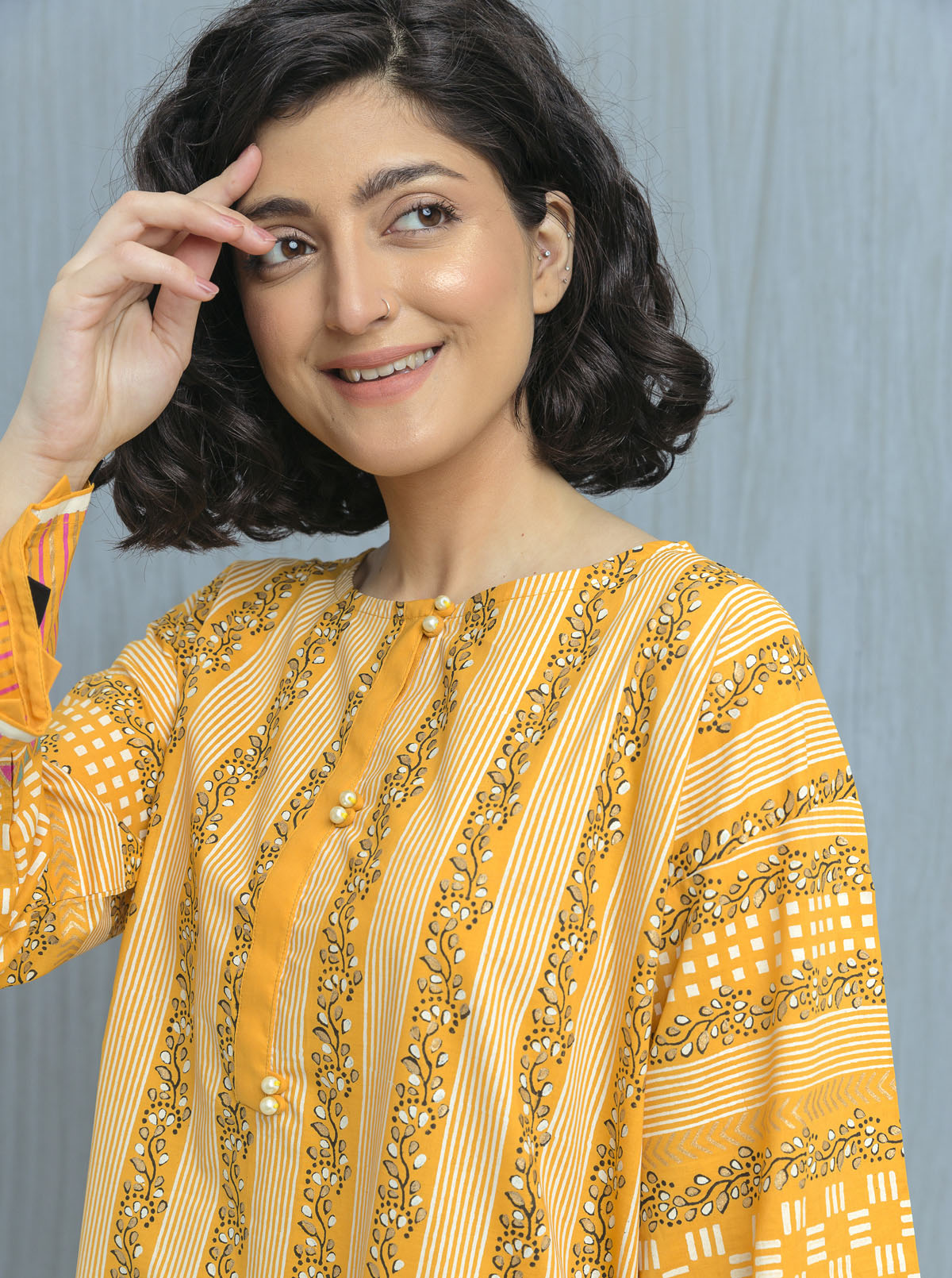 Artisan Collection Full Block Print Shirt With Boat Neck And Front Placket. Contrast Fabric Detail On Sleeve Ends With Full Block Print Fabric: Lawn What You'll Get: Shirt Fit: Extended Shoulder Size & Fit: Model Height Is 5'4"