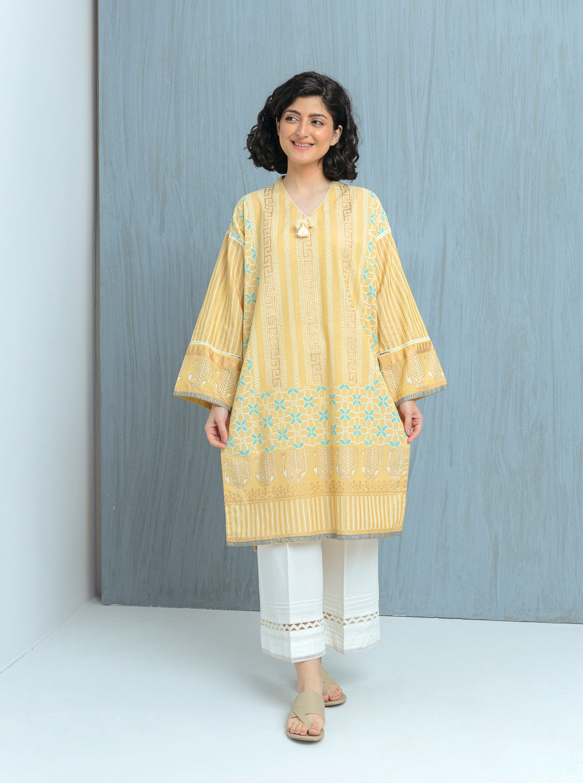 Artisan Collection Full Block Print Shirt With V Neck And Front Tassle On Neckline. Block Print On Sleeves Fabric: Chambray What You'll Get: Shirt Fit: Extended Shoulder Size & Fit: Model Height Is 5'4"