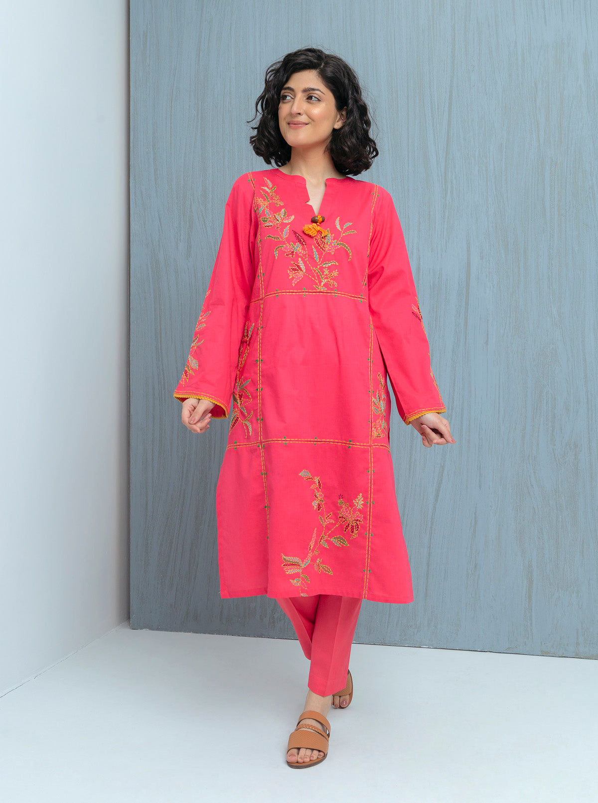 Artisan Collection Hand Embroidery Piece With Beautiful Floral Thread Work On Front And Sleeves. Fabric: Lawn What You'll Get: Shirt Fit: Regular Fit Size & Fit: Model Height Is 5'4" Model Is Wearing 8 Size