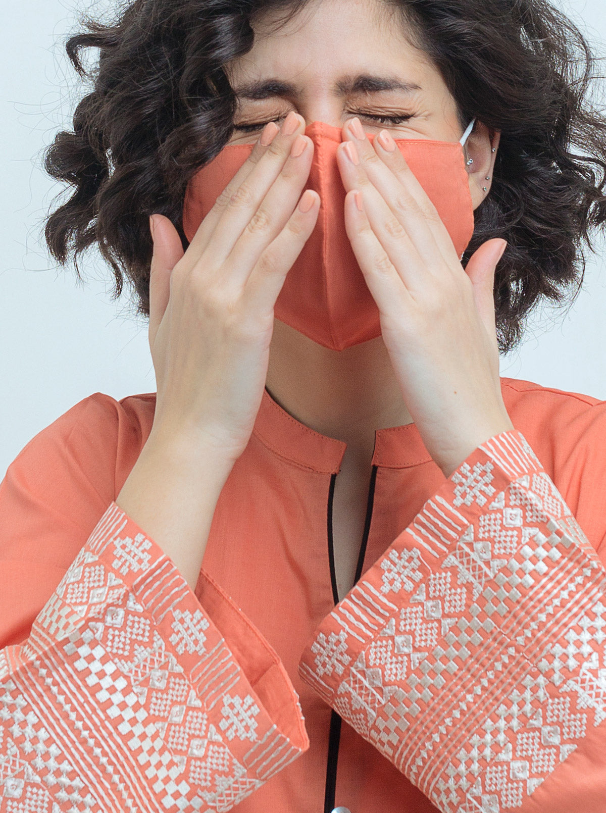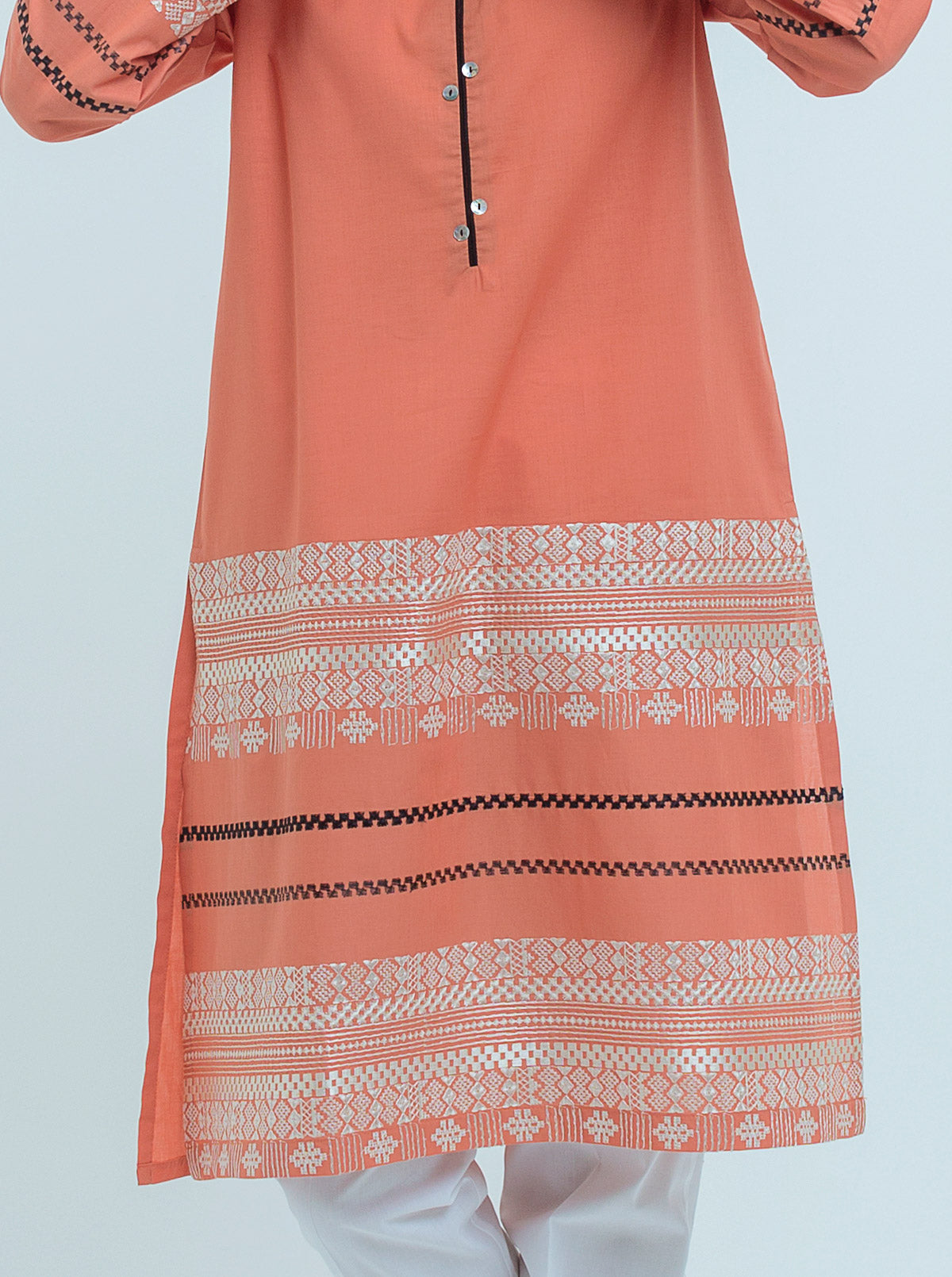 Band Collar With V Piping, Embroidered Front And Sleeves.Button Detail On Neckline. Fabric: Lawn What You'll Get: Shirt Fit: Regular Fit Size & Fit:Regular Model Height is 5'4" Model is Wearing 8 Size
