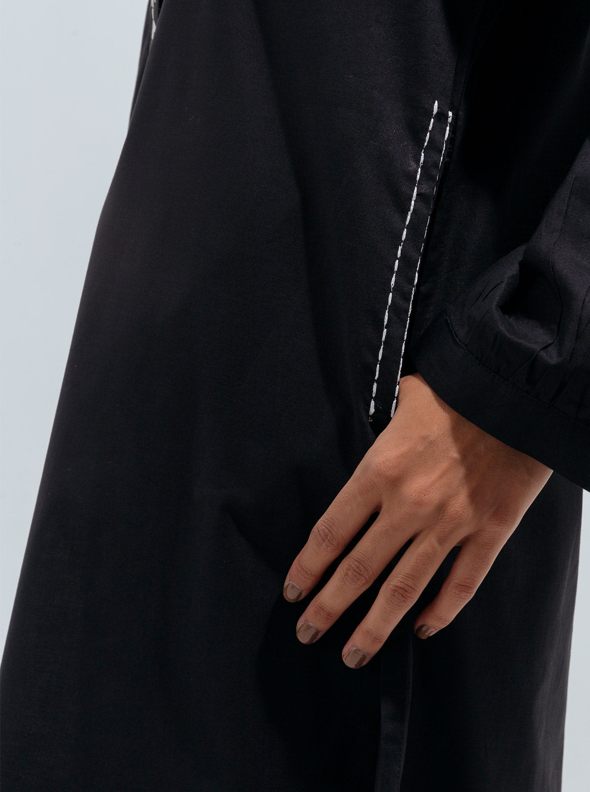 Band Collar With Embroidery On Placket. Top Stitch On Pockets And Geometric Emb On Shirt Sides. Fabric: Lawn
