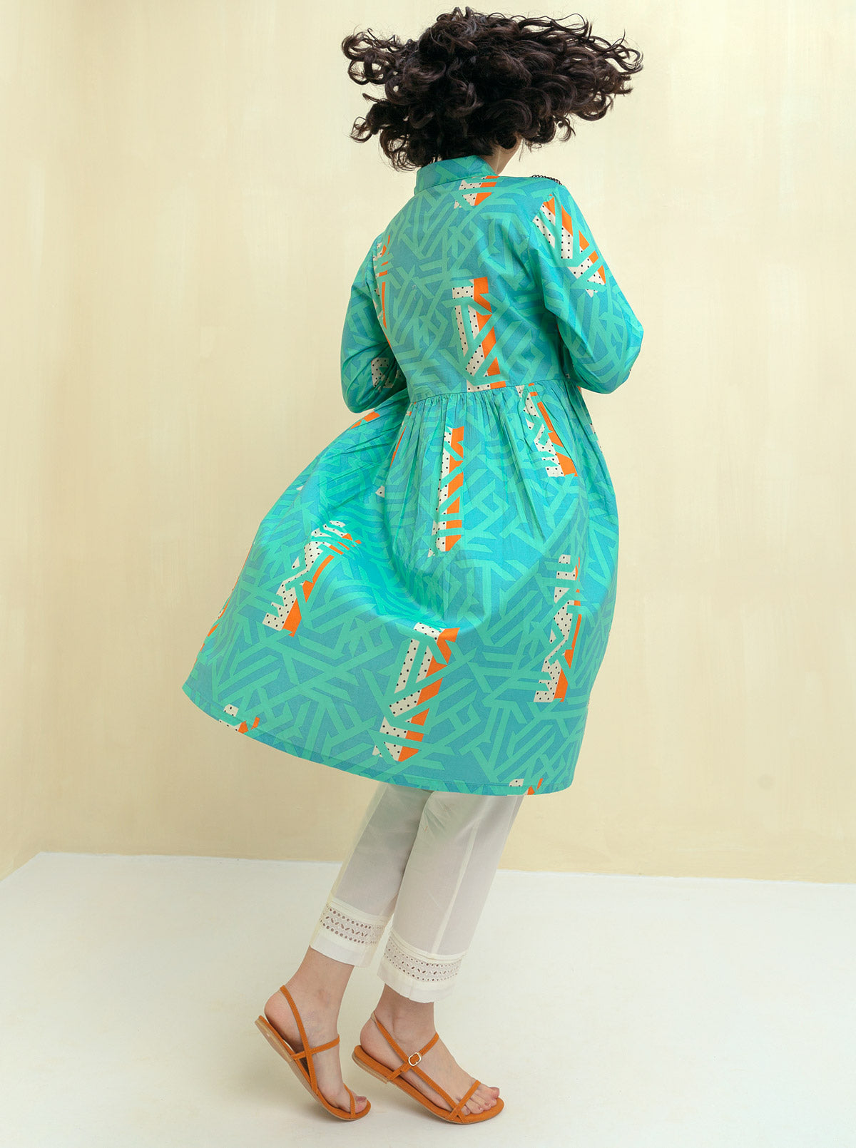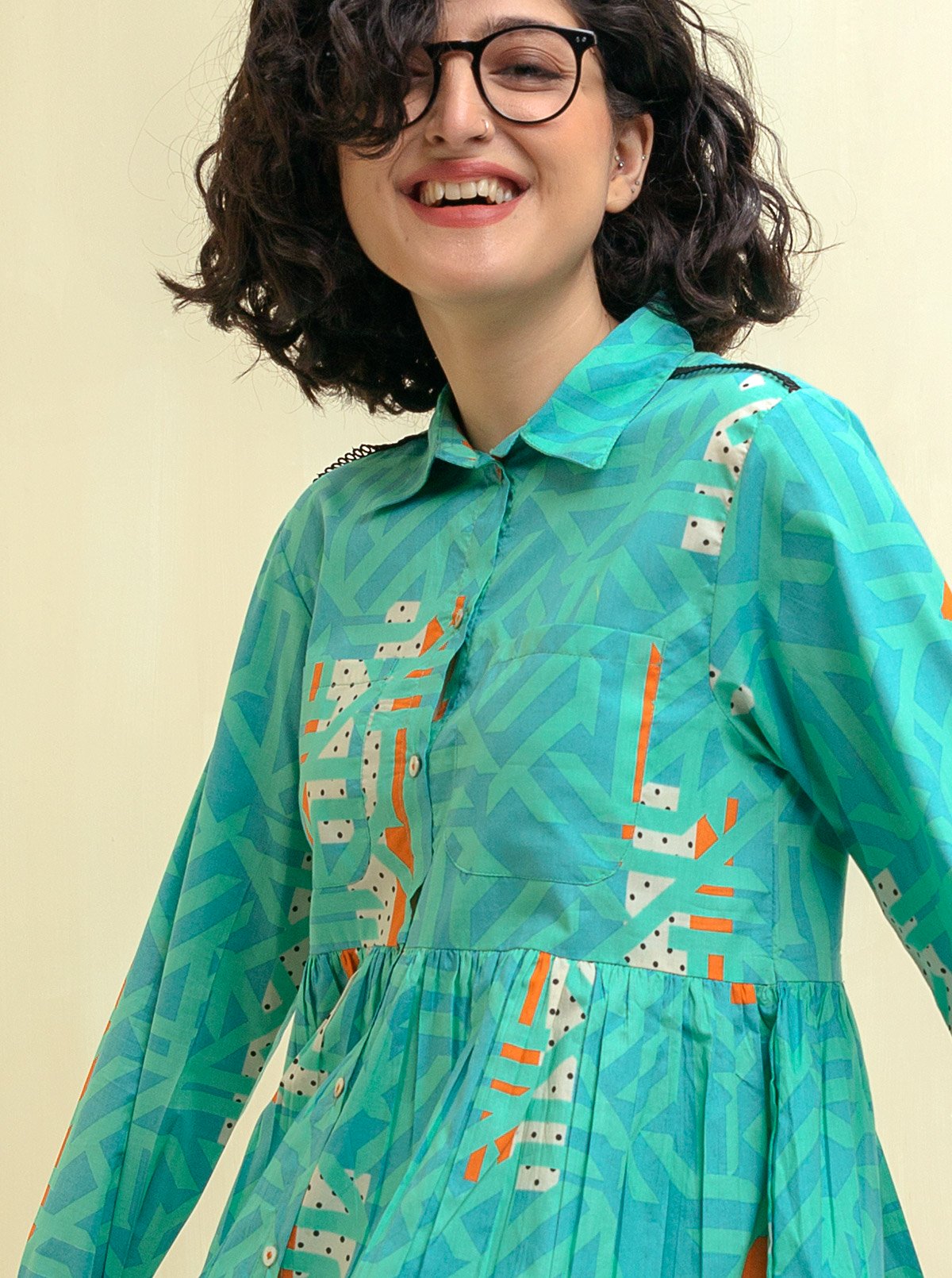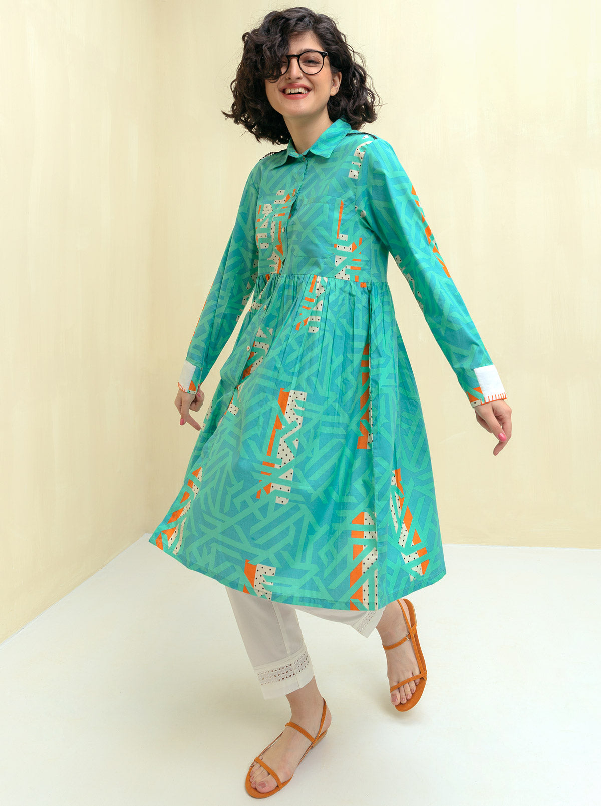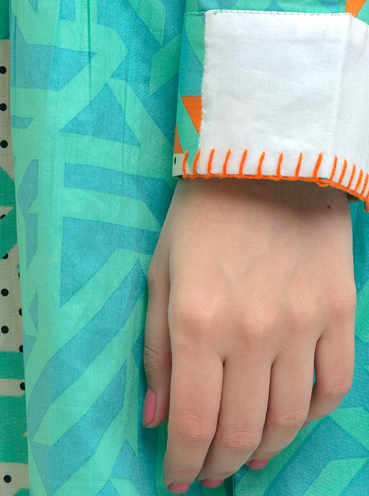 Overlapped V Neckline Cut, Embroidered Border On Sleeves. Fabric: Dobby What You'll Get: Shirt Fit: Regular Fit Size & Fit: Model Height is 5'4 Model is Wearing 8 Size