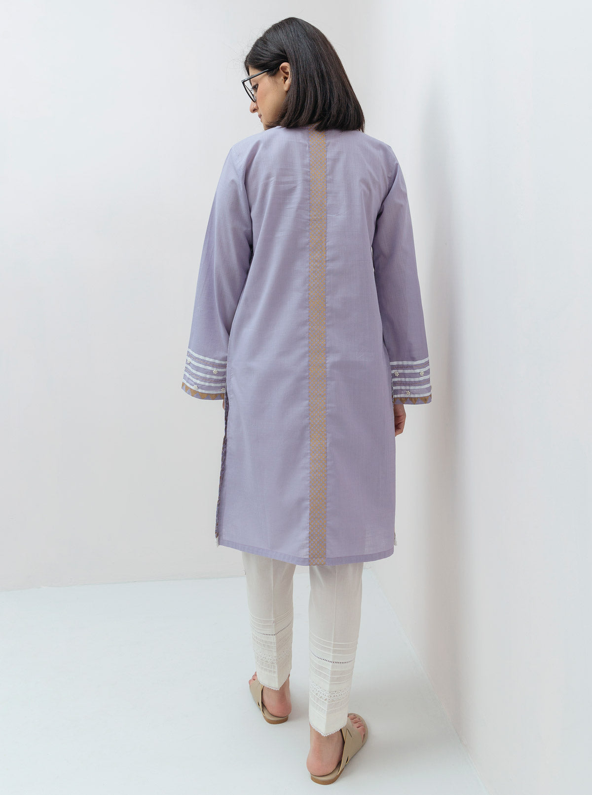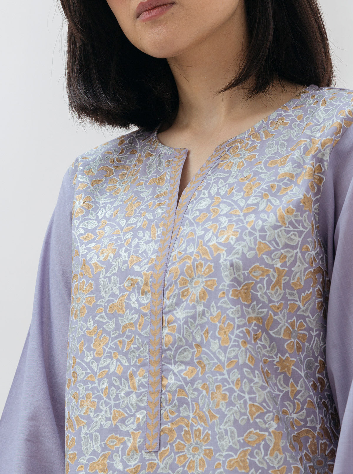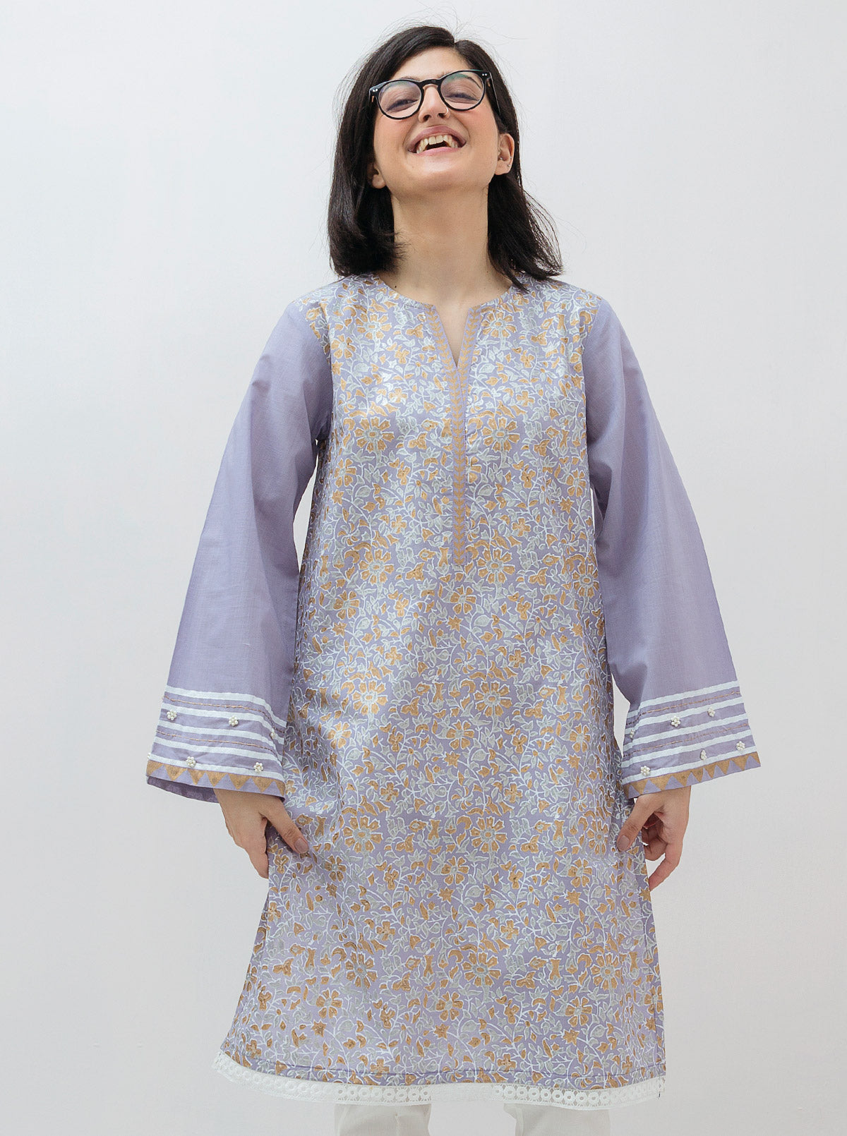 Round Neck With Front Placlet. Full Overall Block Print On Front With Block Printed Broders On SleevesFabric: Slub Lawn What You'll Get: Shirt Fit: Regular Size & Fit: Model Height Is 5'4"