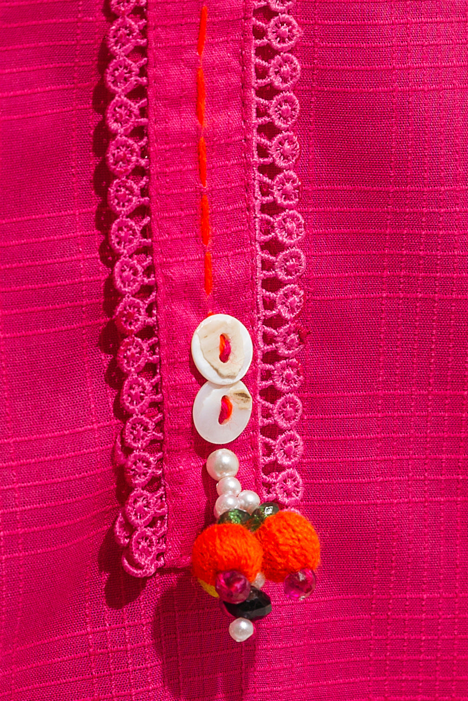 Kurta Style Shirt Pintucks And Lace Detail On Front Hand Made Tassel With Lace Inserts On Sleeves.Fabric:Textured What You'll Get: Shirt