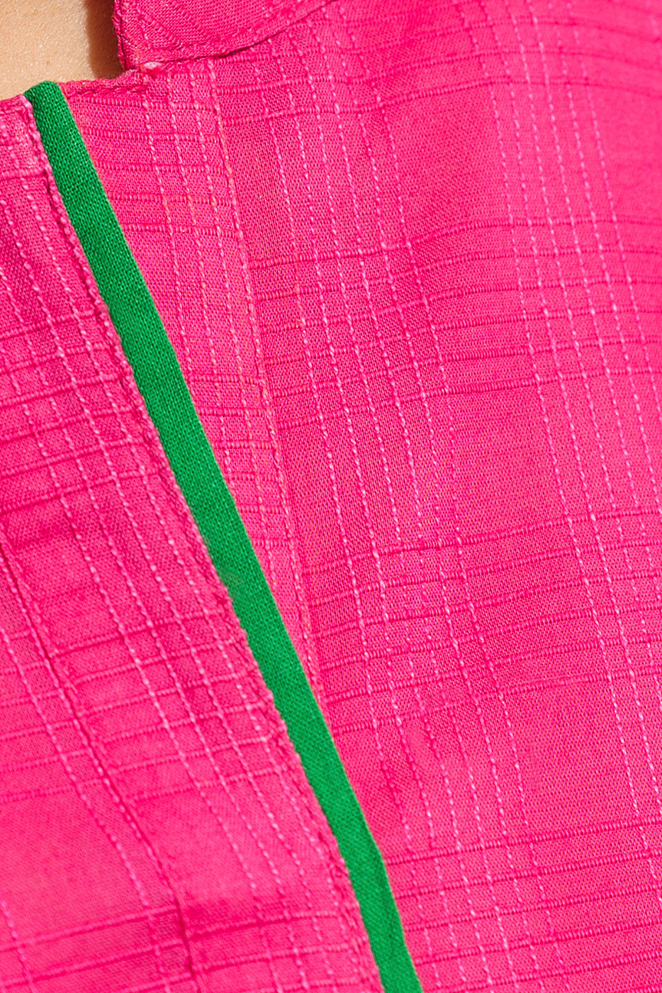 Extended Shoulder Shirt With Colored Accent Trim Detail On Fronbt And Back With Pearl Button Detail On Sleeves.Fabric:Textured What You'll Get: Shirt
