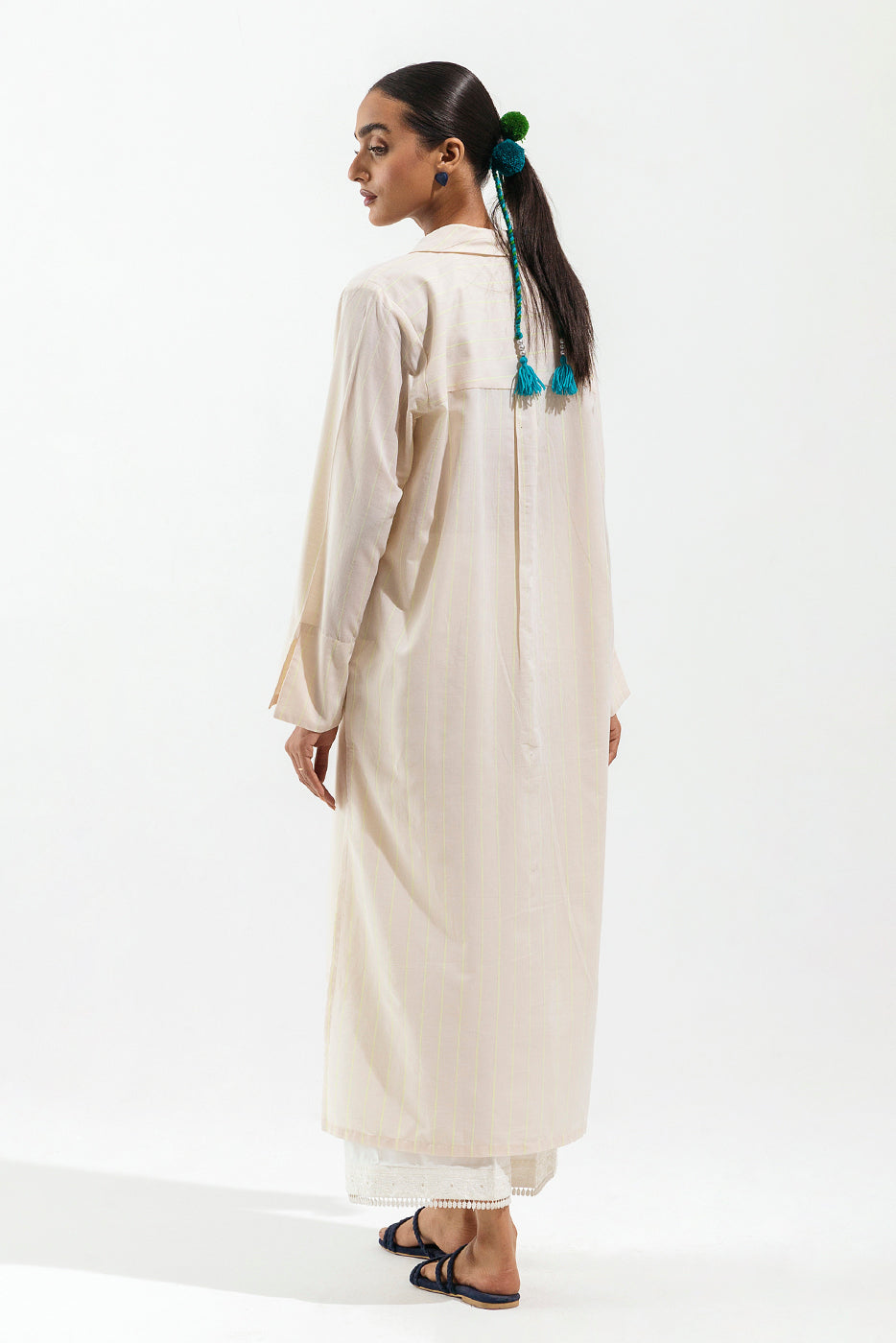 Stripped Long Front Open Style Shirt With Button Detailing On The Front And Cuff Sleeves With Slit On The Side.Fabric:Yarn DyedWhat You'll Get: Shirt