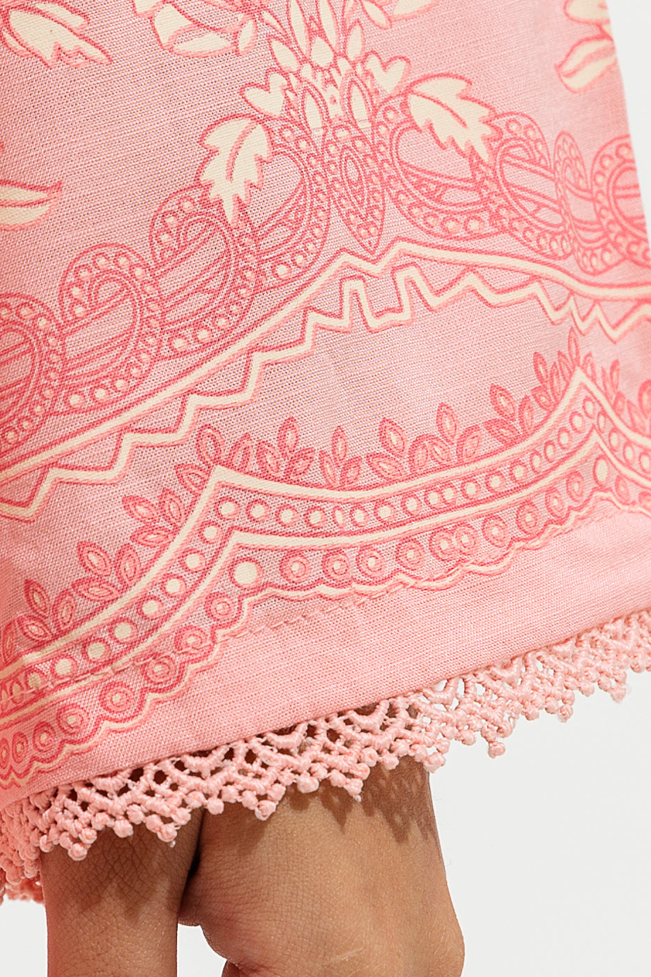 Screen printed kurta with lace detail on neckline and sleeves. Pearl tassle on front.Fabric: ViscosWhat You'll Get: Shirt