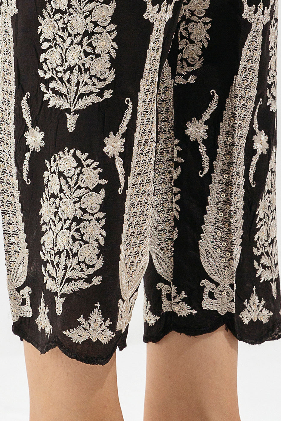 Straight Embroidered Pants With Scalloped Hem And Sequin Embroidery DetailFabric:Raw Silk