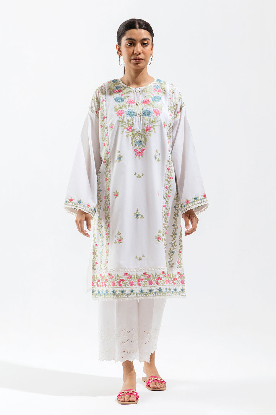 Round Neckline With Embroidered Front And Sleeves. Hand Embellished Detail On Neck Finished With Lace Edging . Fabric:LawnWhat You'll Get: Shirt