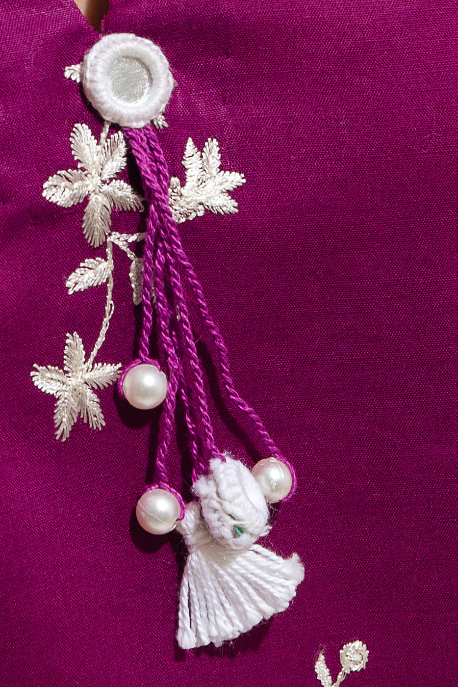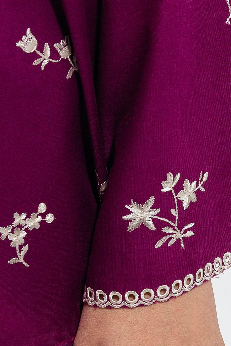 Basic Embroidered Fusion Top Having Band Collar With A Tassel On It Having Extended Shoulders. Fabric:LawnWhat You'll Get: Top