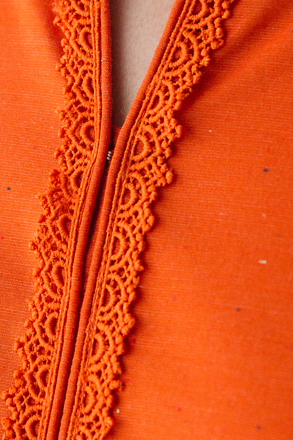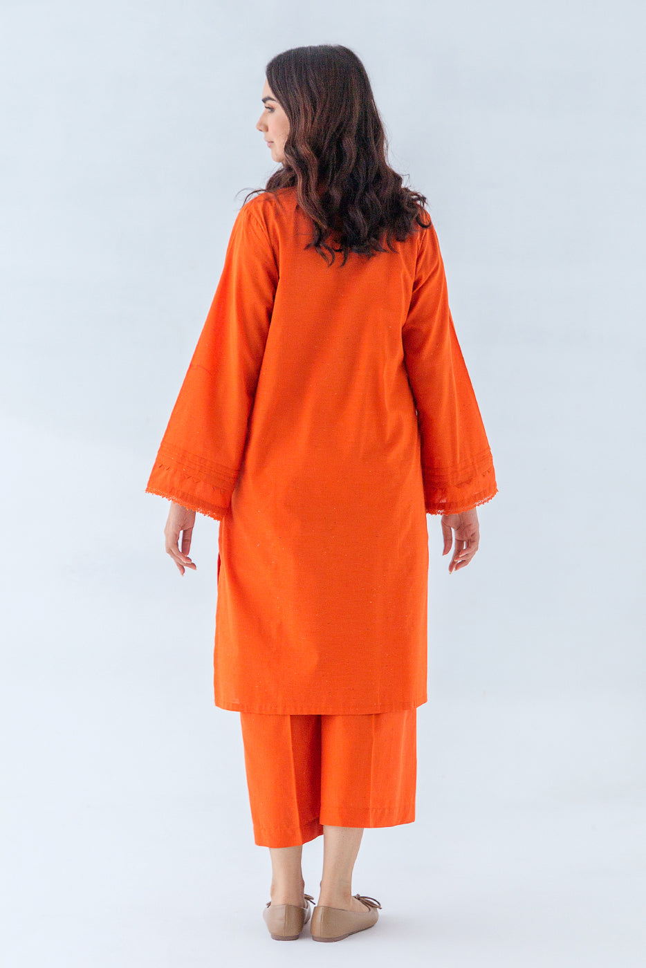 Basic Two Piece Set Having Shirt With Band Collar Along With Lace Details All Over, Paired With Slack Pants. Fabric:Multi NepsWhat You'll Get: Shirt+Pants