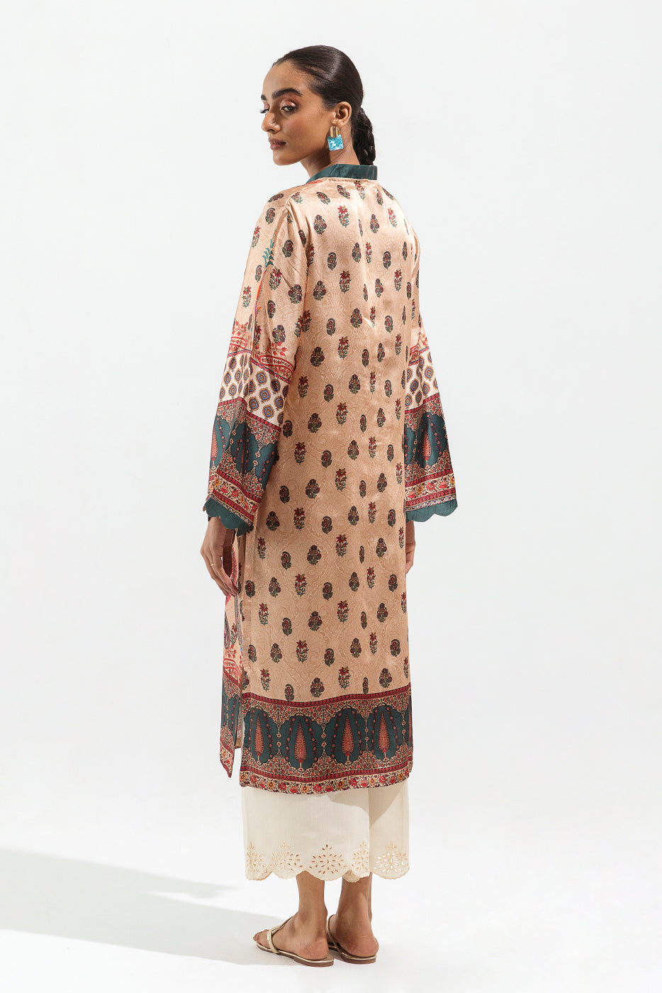 Silk Tunic In Front Open Cutline With Loop And Button Detailing On The Front And Scallop Detailing On The Sleeve.Fabric:Printed SilkWhat You'll Get: Shirt